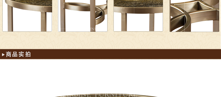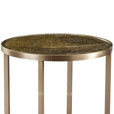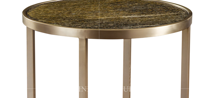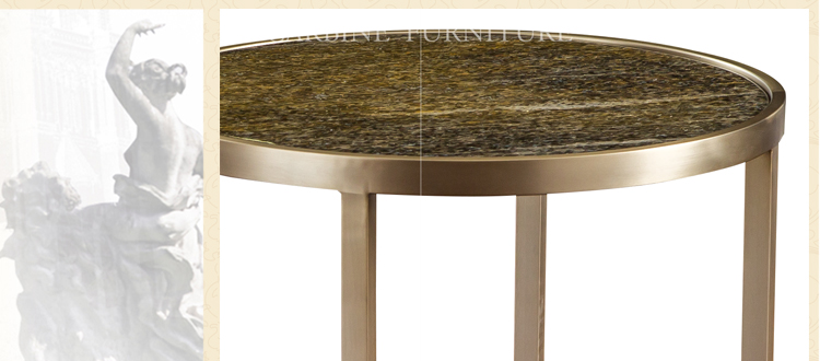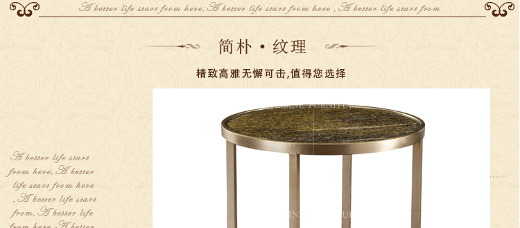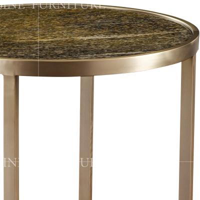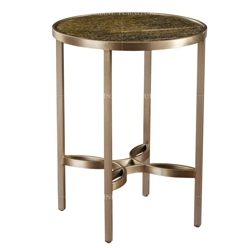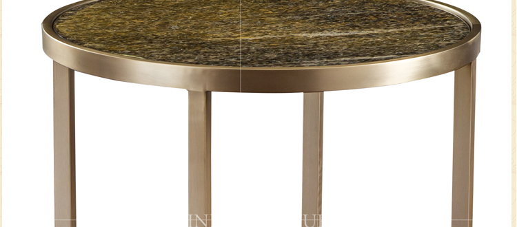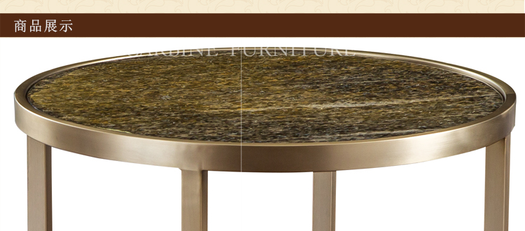 卡缤美式风格简约客厅圆边几大理石台面小边几不锈钢镀铜边几612-10