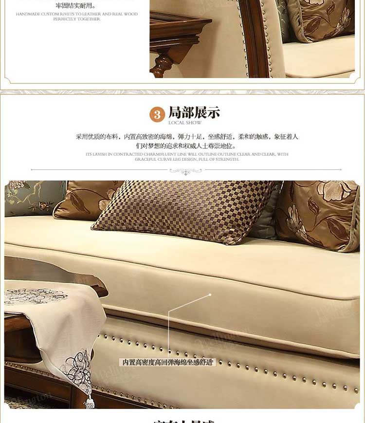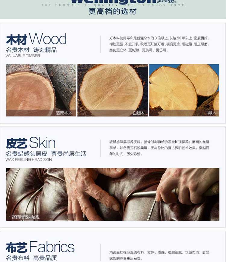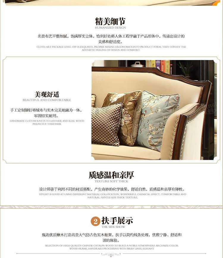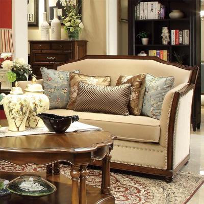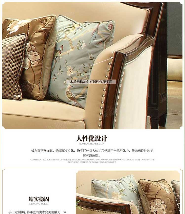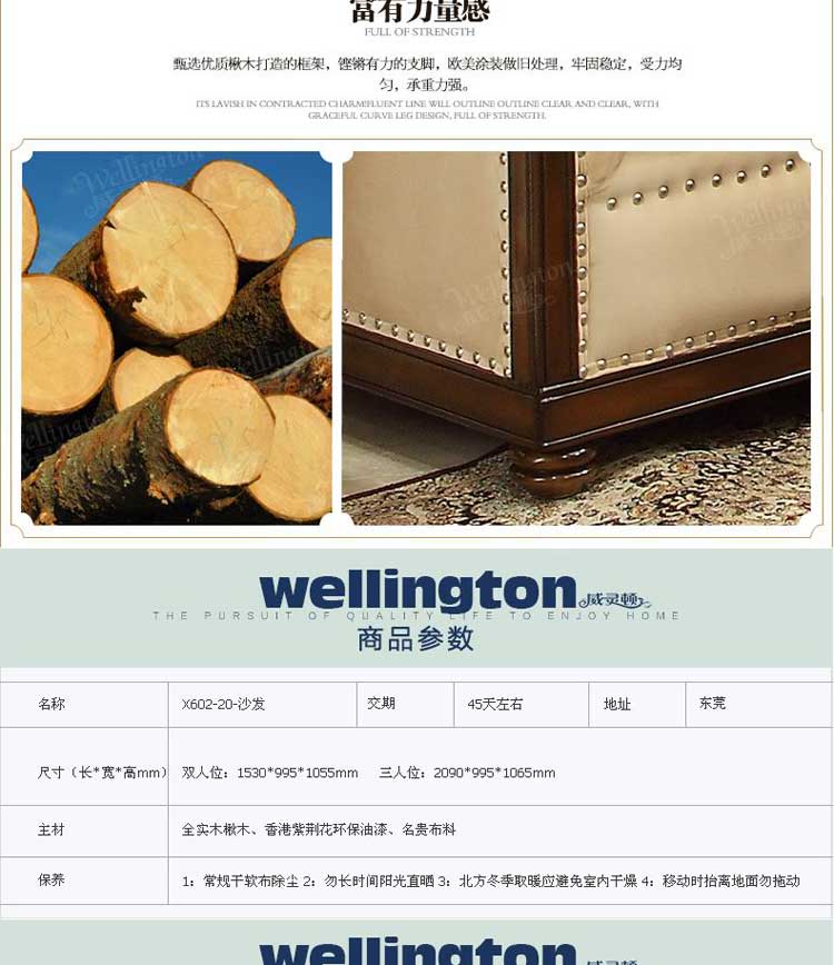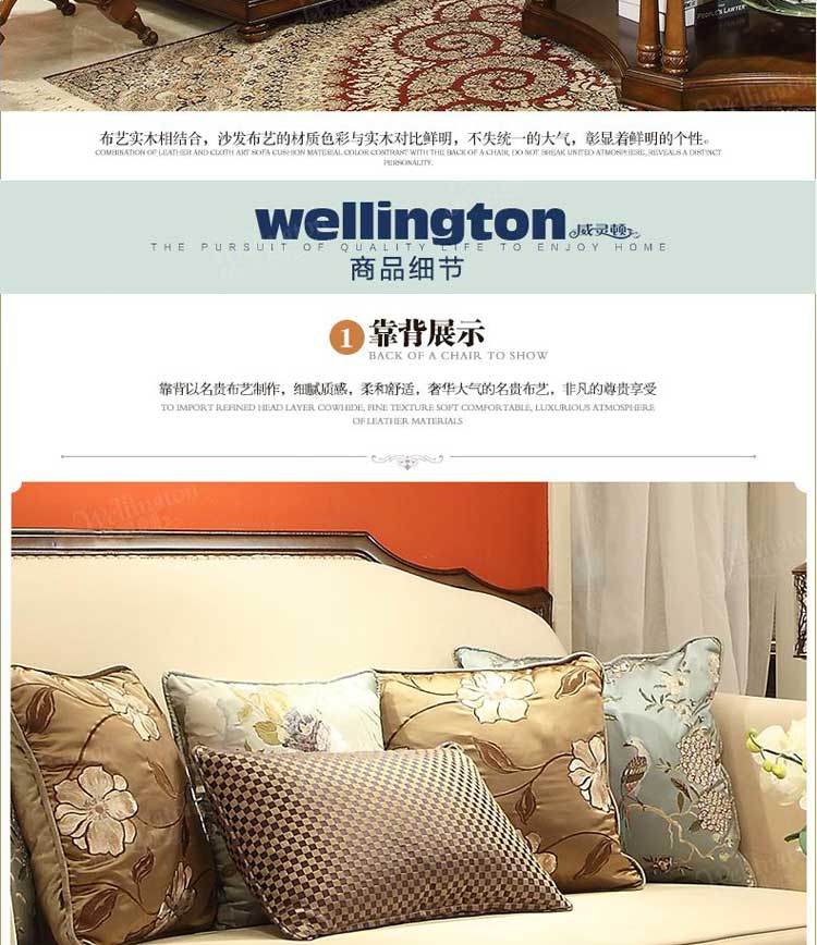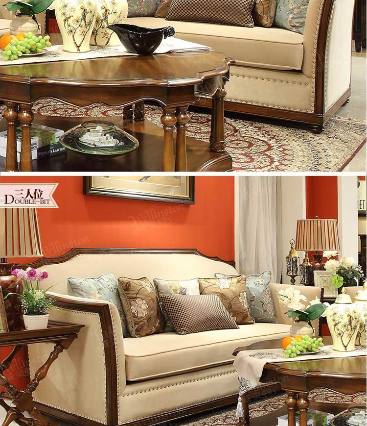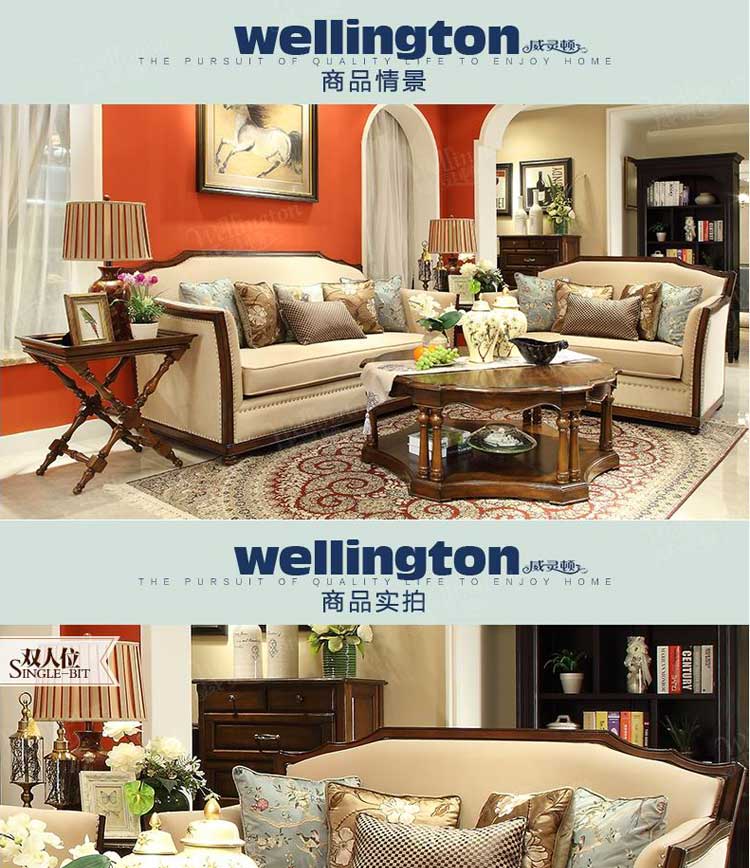 威灵顿 美式实木布艺沙发小户型简约田园简美两人三人沙发X602-20
