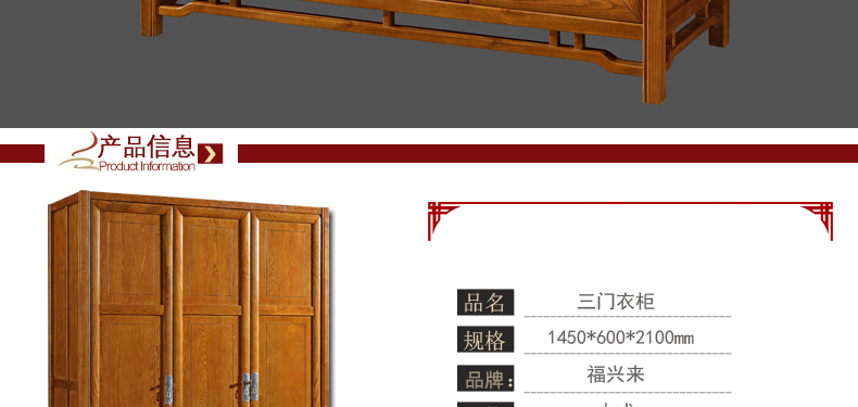 福兴来卧室中式简约风格储物三门衣柜大小户型大容量收纳衣柜YG-T01-3