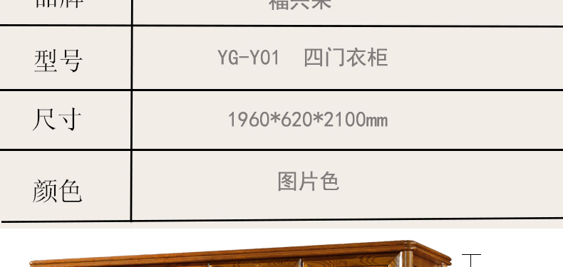 福兴来中式风格卧室简易大容量储物四门衣柜高档储物衣柜YG-Y01
