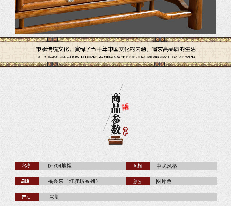 福兴来中式风格简约高档电视柜客厅大容量储物收纳地柜D-Y04