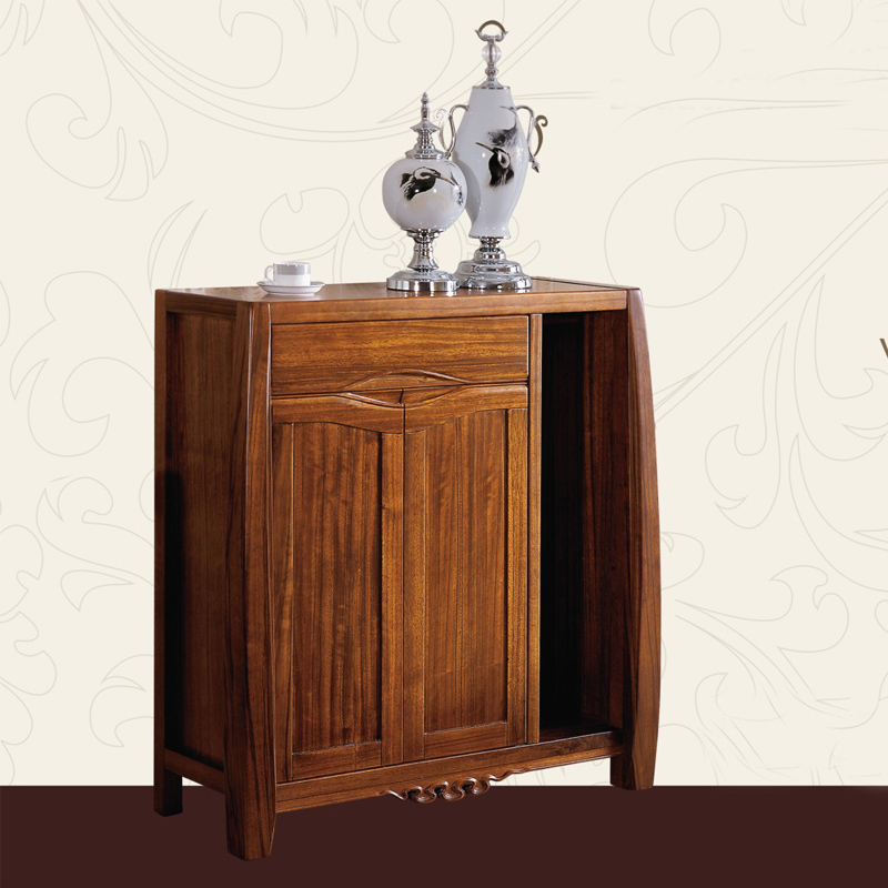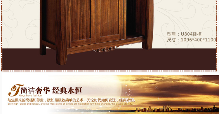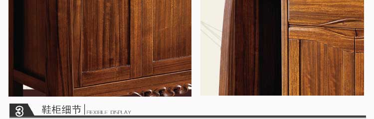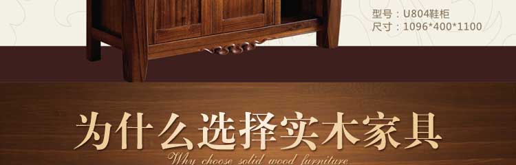 福兴来华派些列乌金木简约木质玄关鞋柜中式现代门厅柜对开门鞋橱组合U804