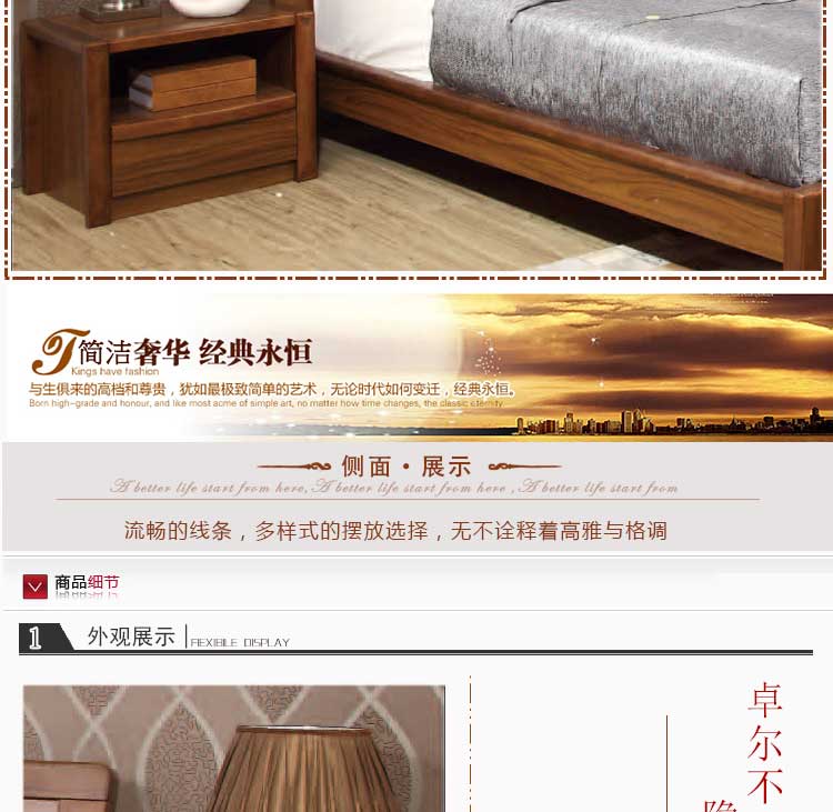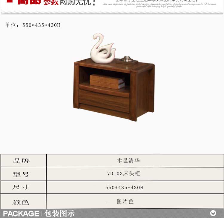 木邑清华 新款床头柜 实木中式床头柜 卧室宜家床头柜 VD103