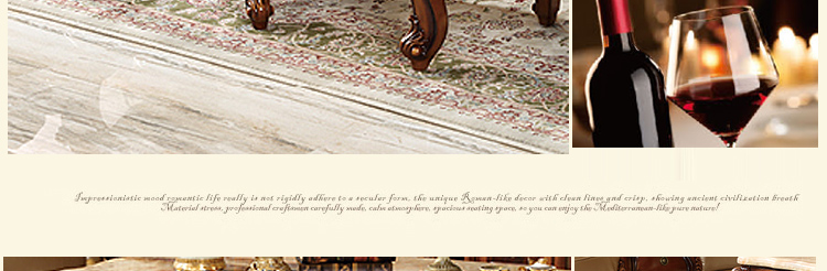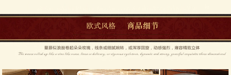 柔和的色调,大气典雅的外形,精巧的装饰点缀着每一个细节,隐隐浮现含蓄与稳重,撩拔着一种新的生活姿态,追求一种繁复夸饰,富丽堂皇,气势宏大,富于动感的艺术境界。高贵的生活品质,雍容华贵的内在气息,张扬的造型征服心灵,延续欧式的浪漫与精致!