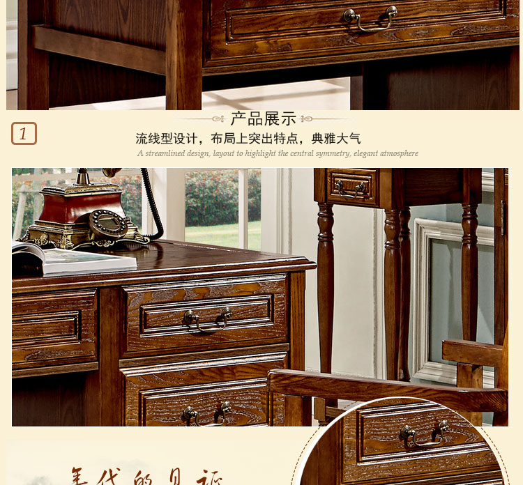 达人居 书房书台转椅组合新款带抽书桌可旋转书椅组合 8E01#
