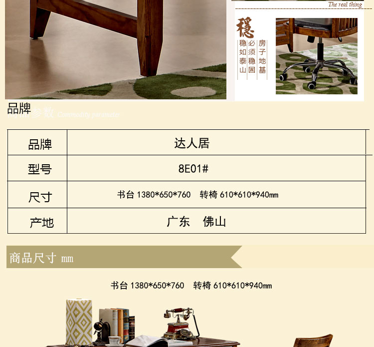 外围尺寸 书台1380*650*760 转椅 610*610*940mm