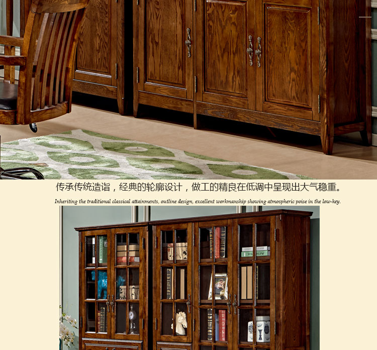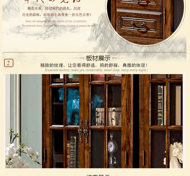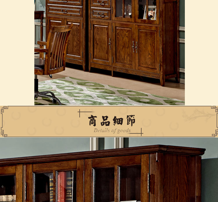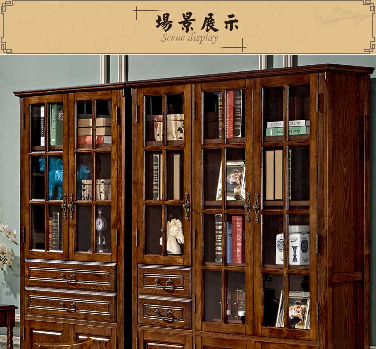 达人居 中式两门书柜三门书柜白腊木书柜百搭书房书柜组合 8F01#