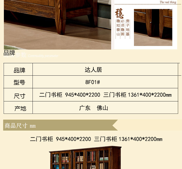 外围尺寸 二门书柜945*400*2200 三门书柜1361*400*2200mm