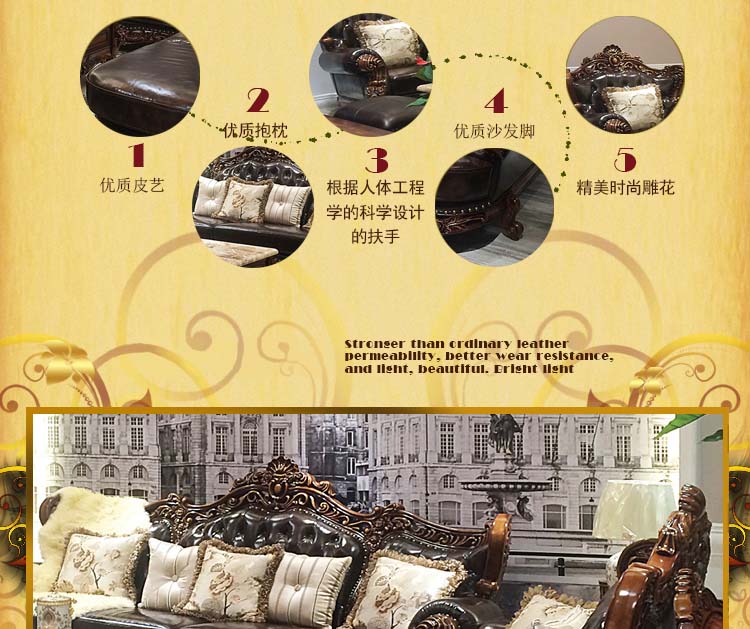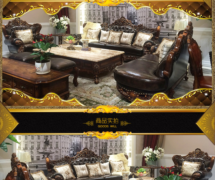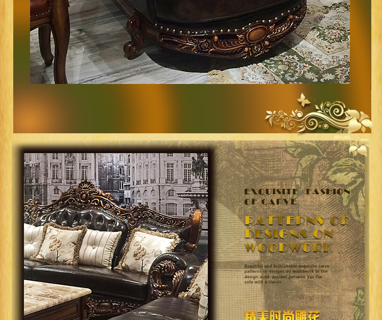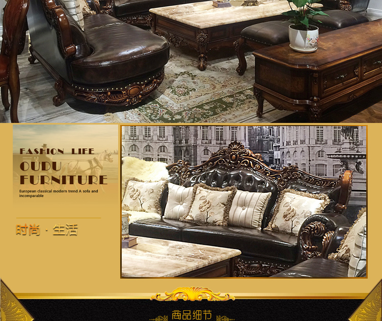 法尔丹欧式风格实木雕花舒适高档U型沙发组合大小户型实用沙发966沙发