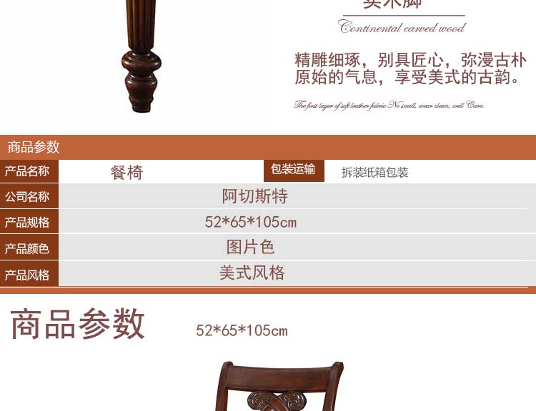 阿切斯特 美式复古实木餐椅高靠背软包布艺餐厅吃饭椅子家用 221-C02