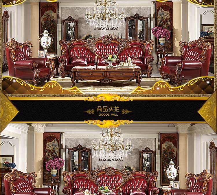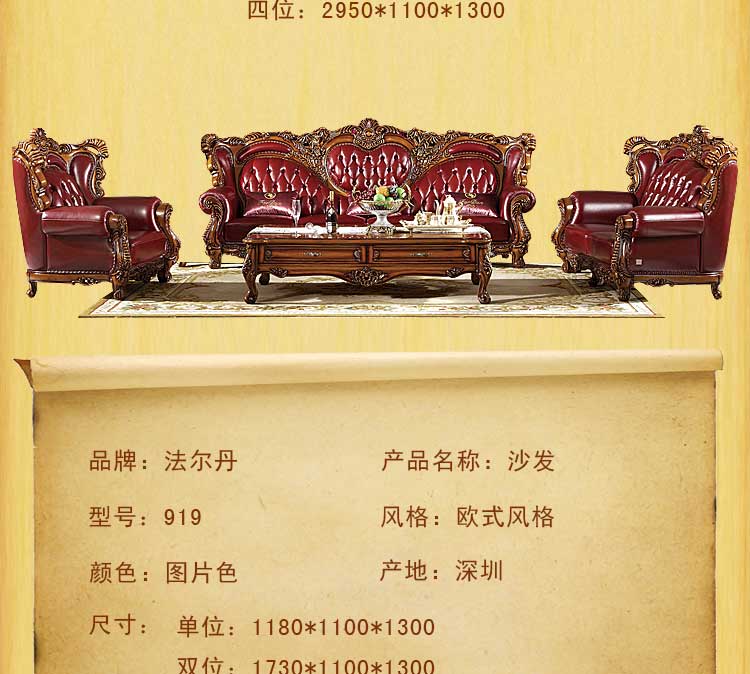 法尔丹新款欧式真皮沙发组合大小户型新古典客厅皮艺沙发919