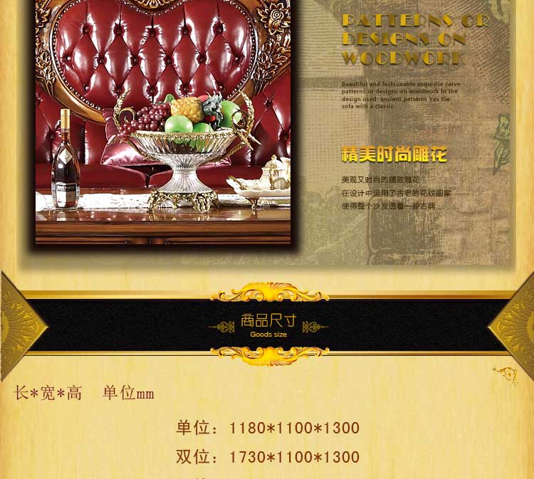 柔和的色调,大气典雅的外形,精巧的装饰点缀着每一个细节,隐隐浮现含蓄与稳重,撩拔着一种新的生活姿态,追求一种繁复夸饰,富丽堂皇,气势宏大,富于动感的艺术境界。高贵的生活品质,雍容华贵的内在气息,张扬的造型征服心灵,延续欧式的浪漫与精致!