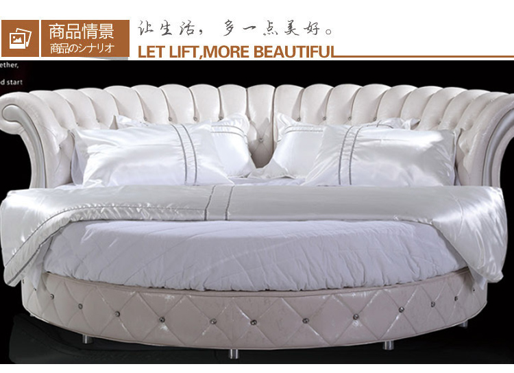 圣德利奥 现代简约 软包皮艺 舒适大床圆床婚床1.8米双人床834#