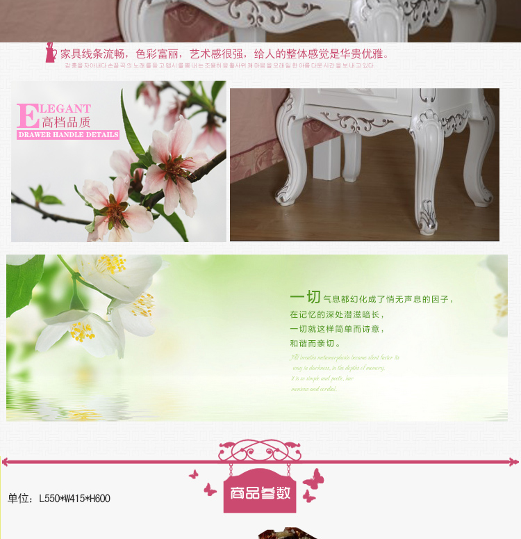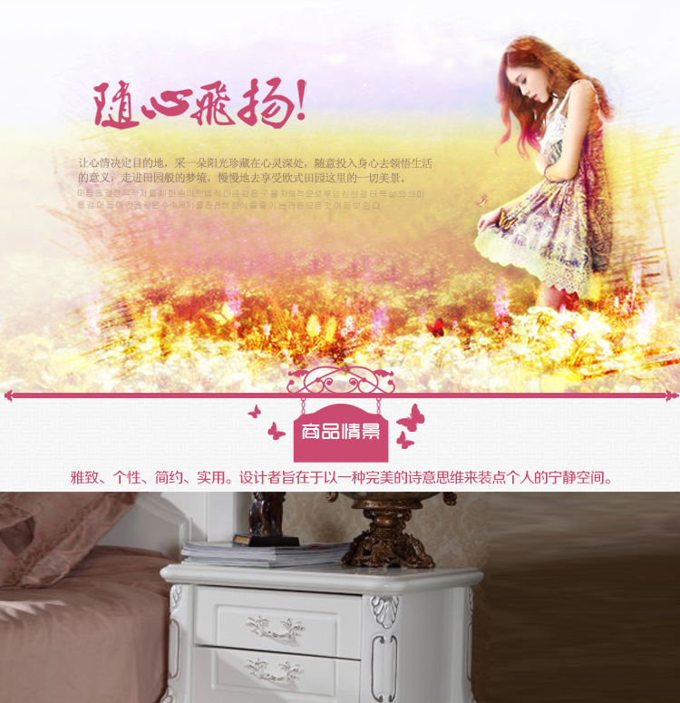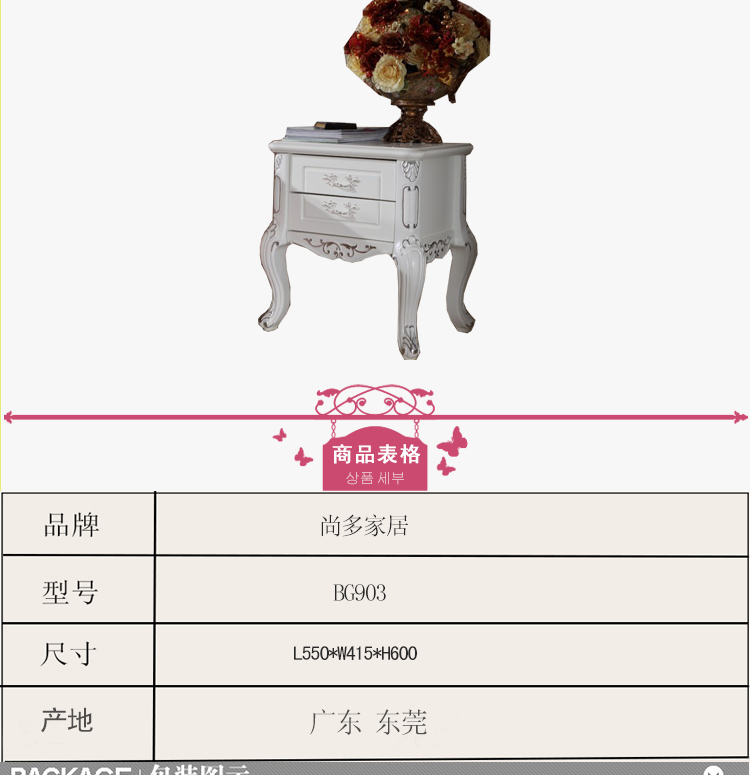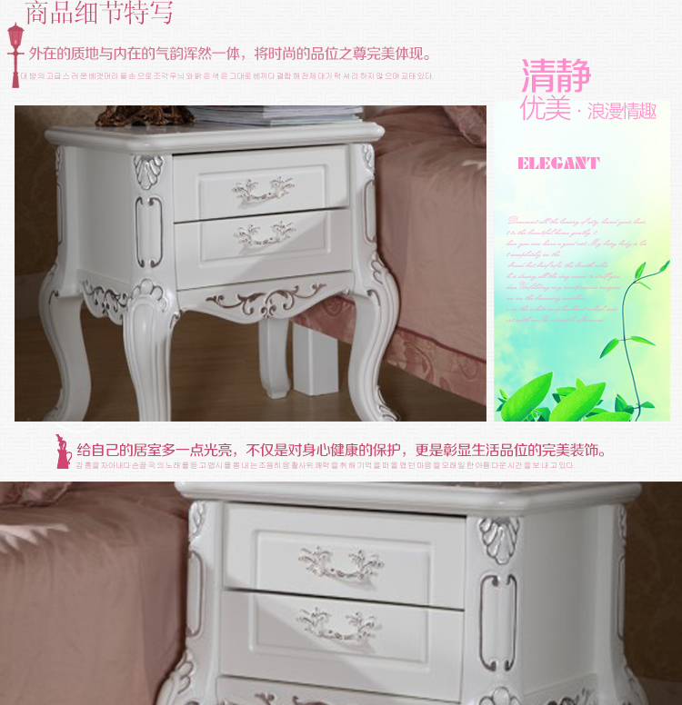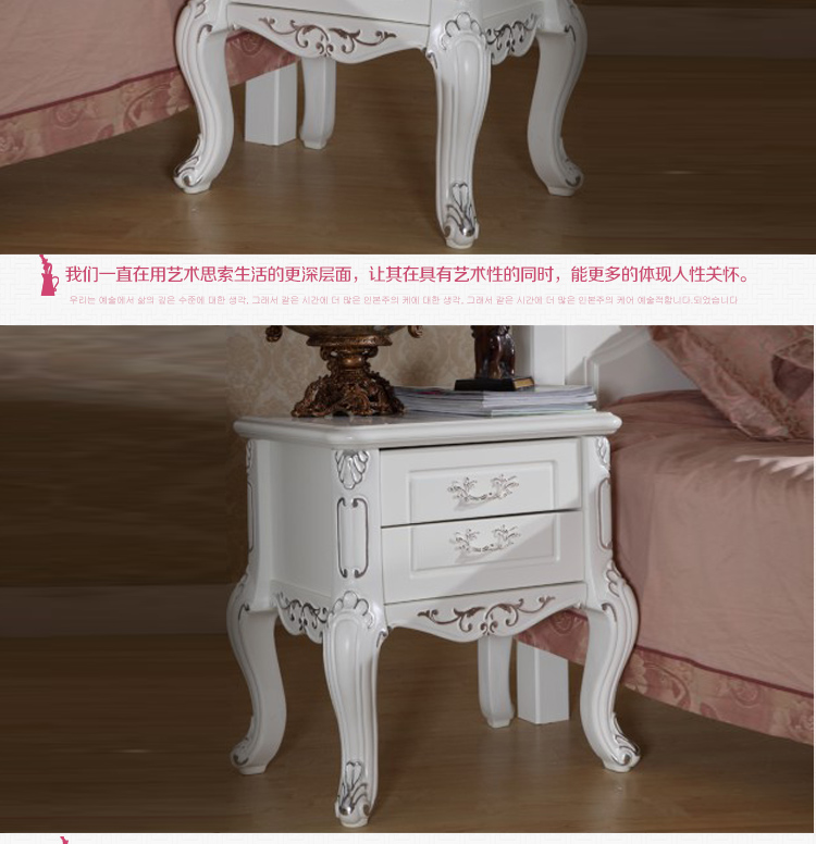 尚多家居 美式雕花床头柜抽屉储物收纳柜象牙白+银箔做旧 BG903