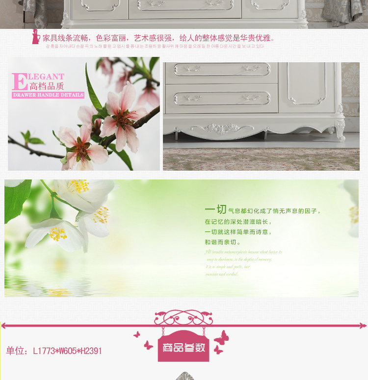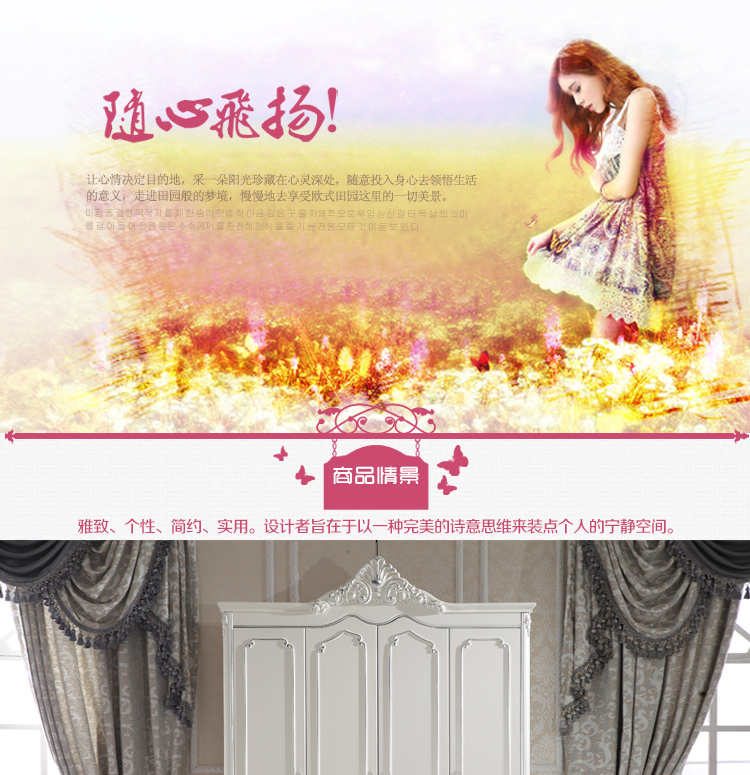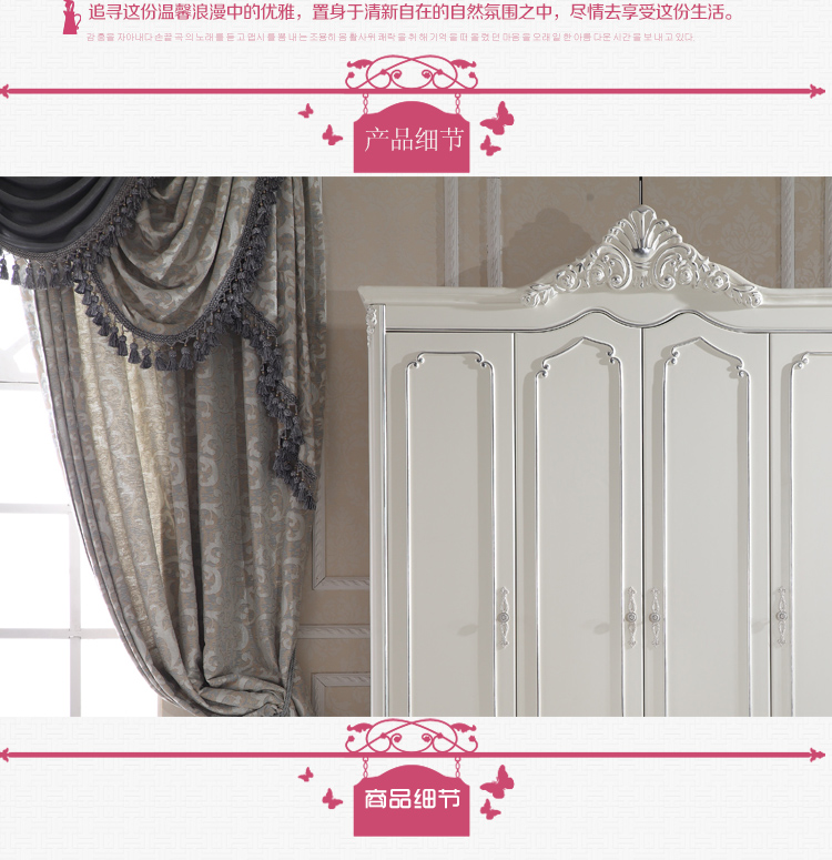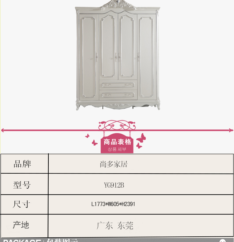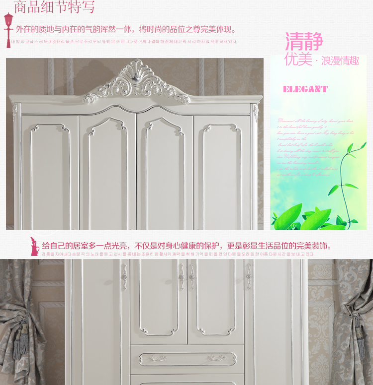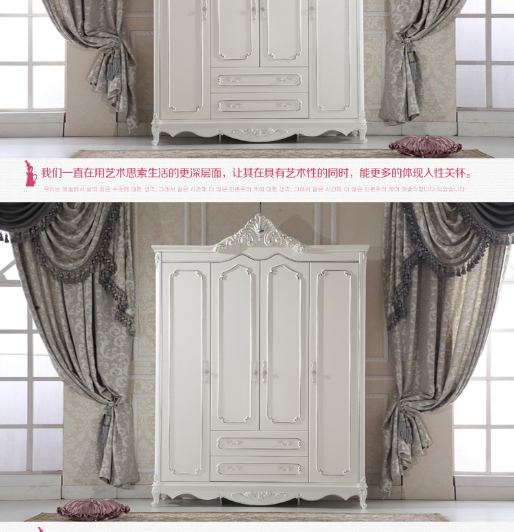 尚多家居 四门衣柜大衣橱卧室象牙白+银箔做旧美式雕花 YG912B