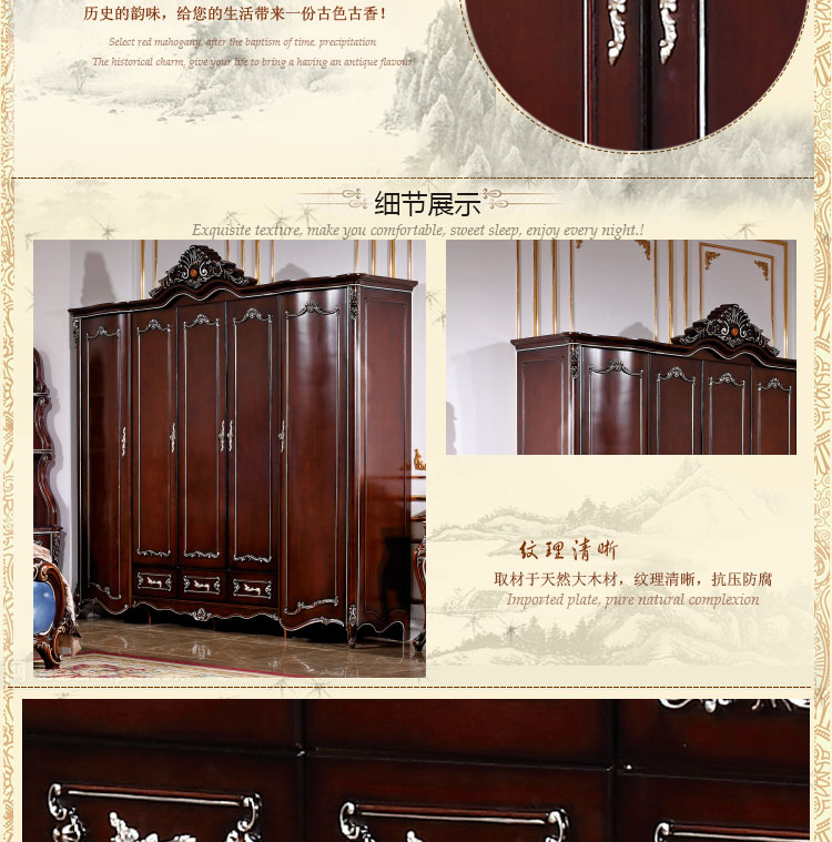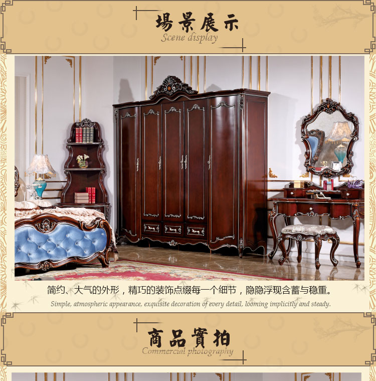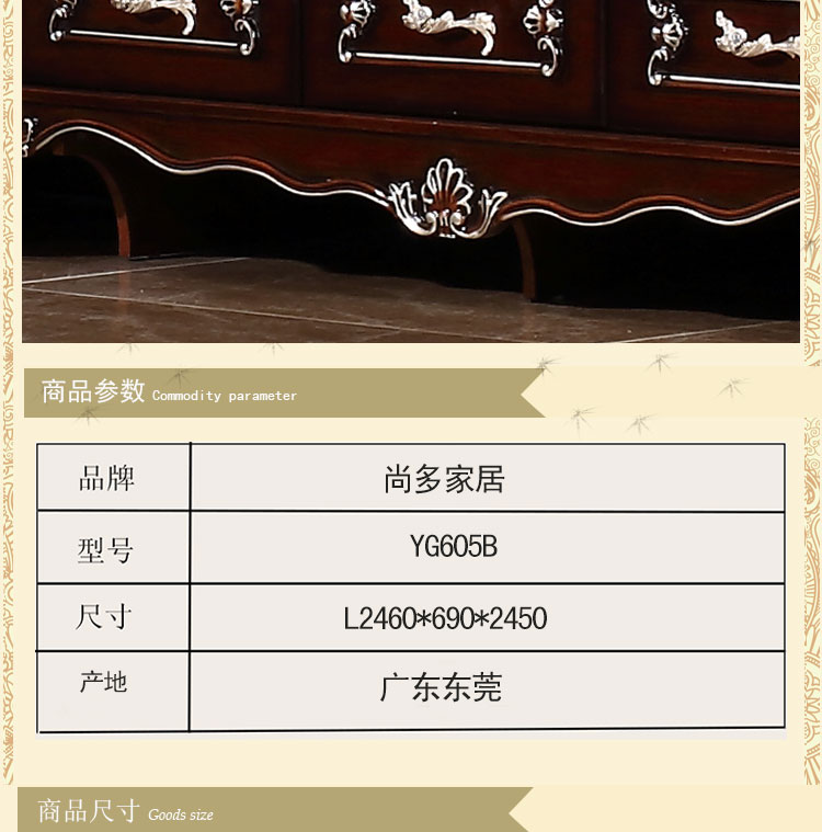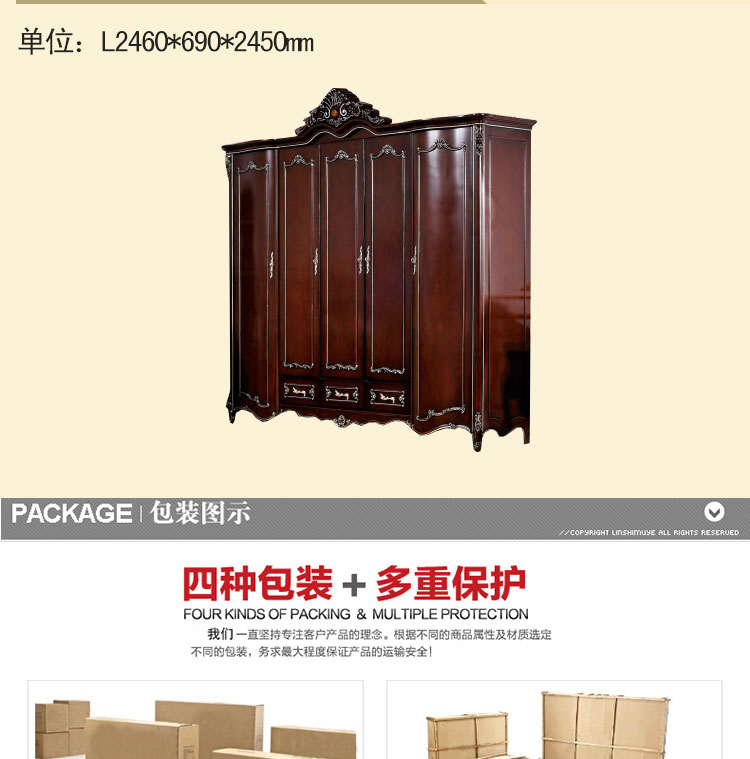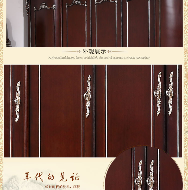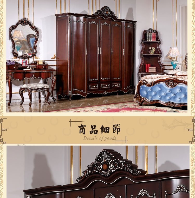 尚多家居 五门衣柜大衣橱卧室深色+描香槟金欧式雕花五门衣柜 YG605B