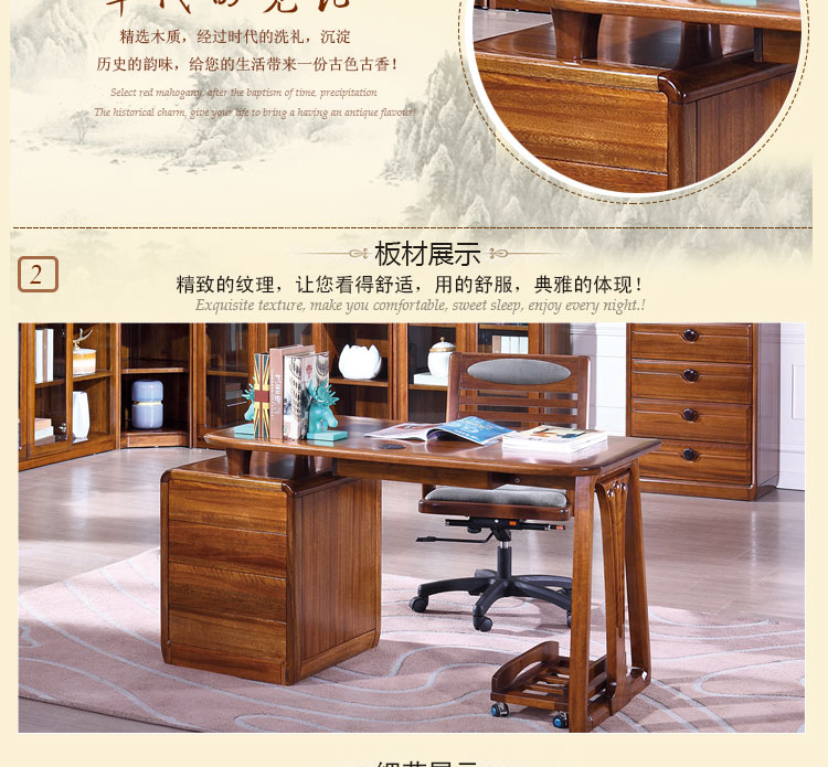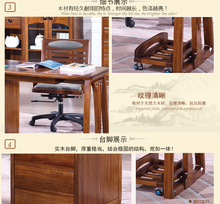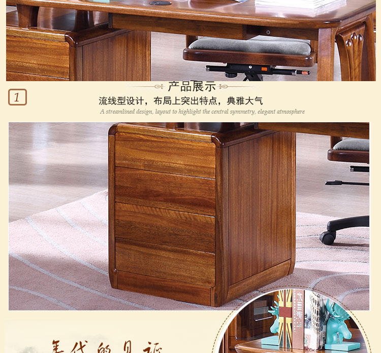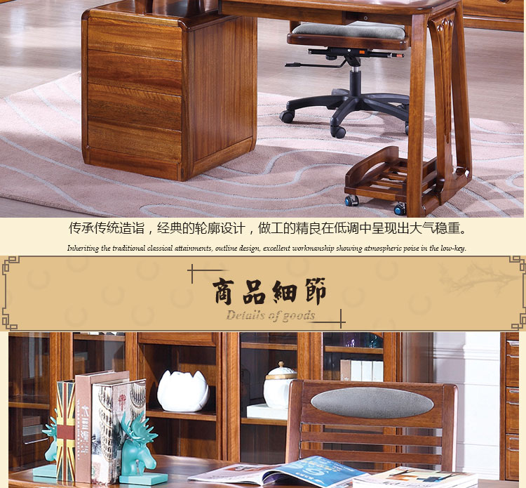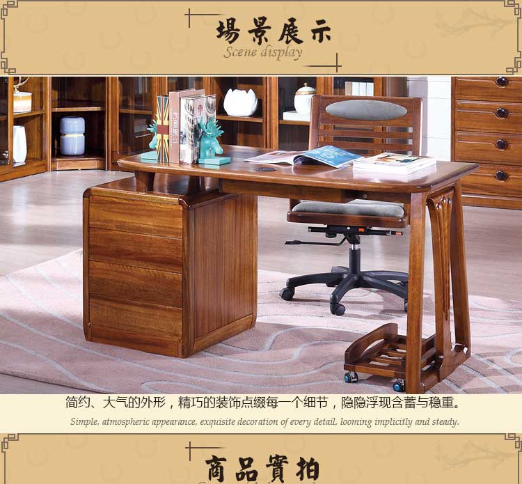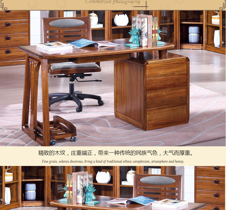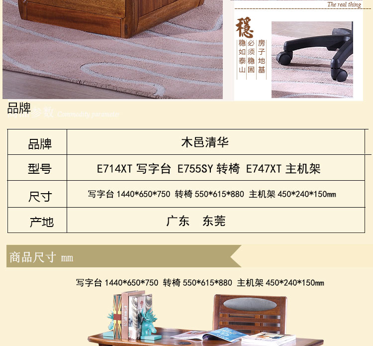 木邑清华 新款写字台实木工作台转椅主机架组合 E714XT写字台E747XT主机架E755SY转椅