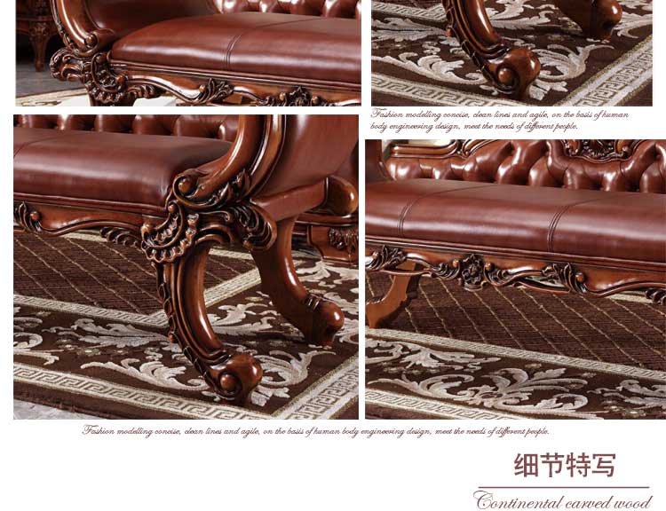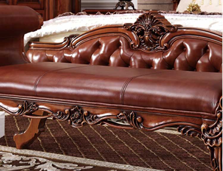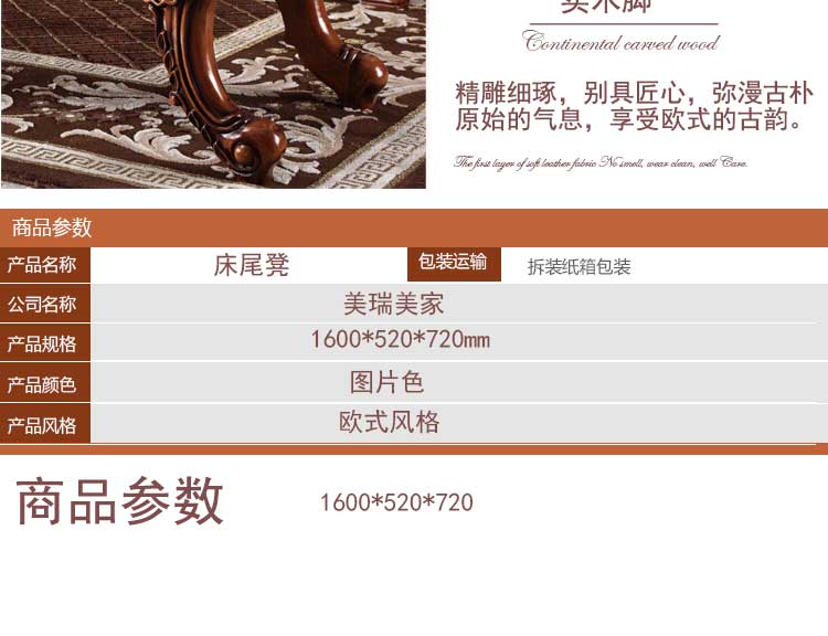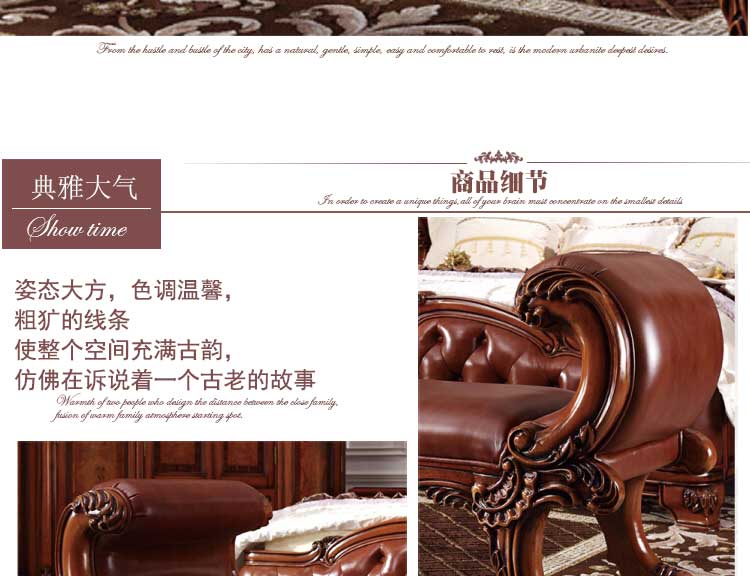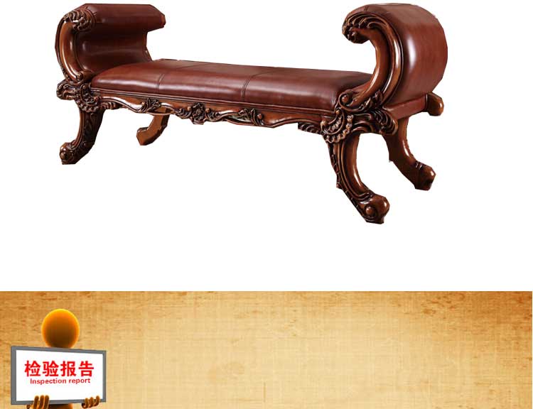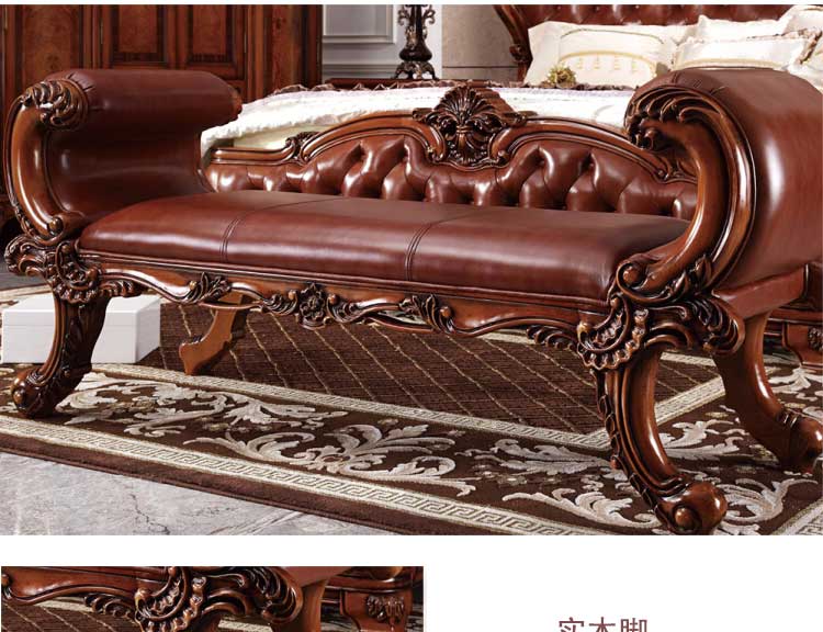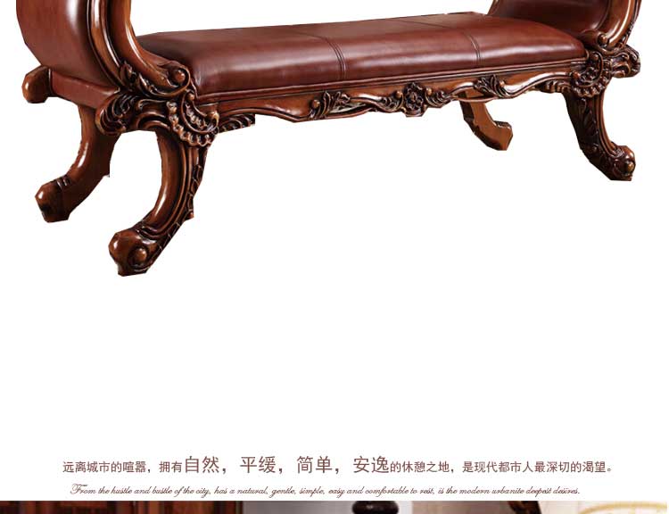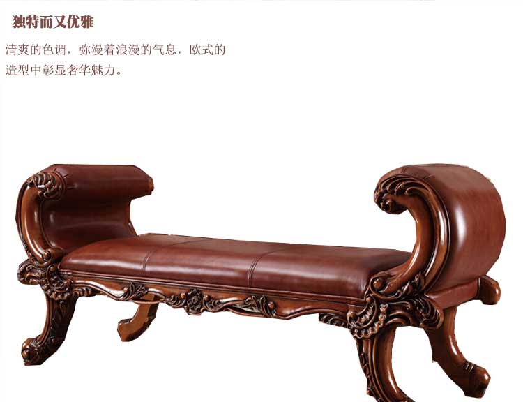 美瑞美家 欧式床尾凳实木真皮沙发凳卧室床边凳美式床前凳深色长凳A66