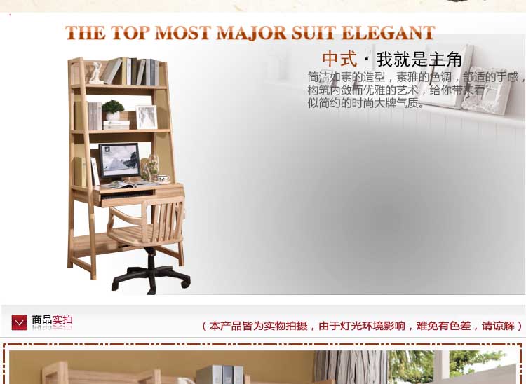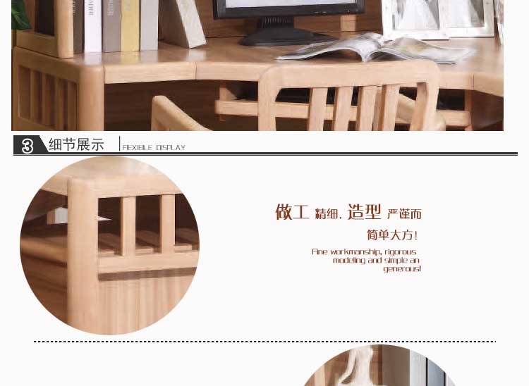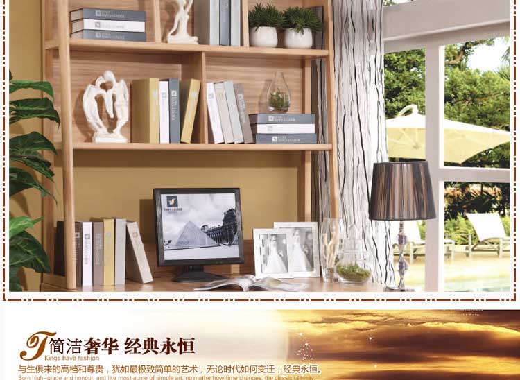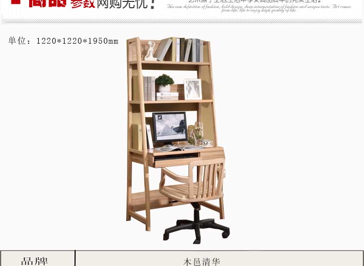 木邑清华 实木电脑桌简约现代转角书桌书架学习桌中式书台组合MS215-L