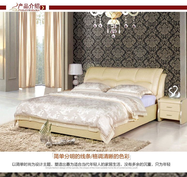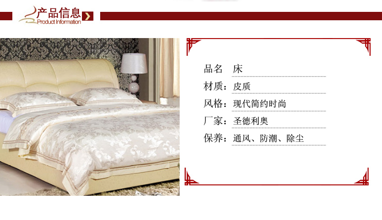 圣德利奥 现代简约 软包皮艺 舒适大床皮床现代品牌软床 1.5米婚床1006#