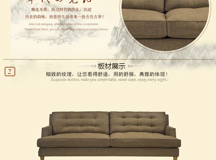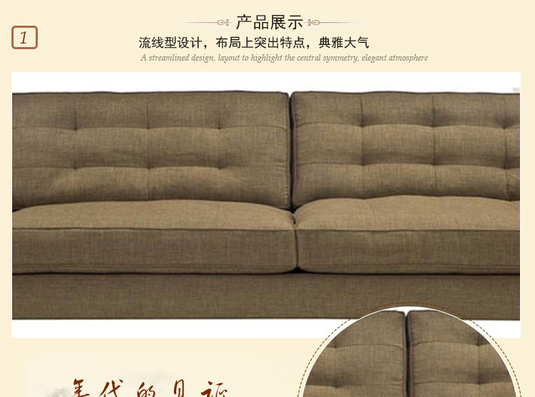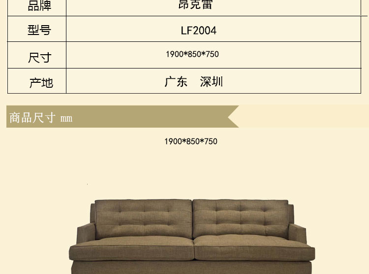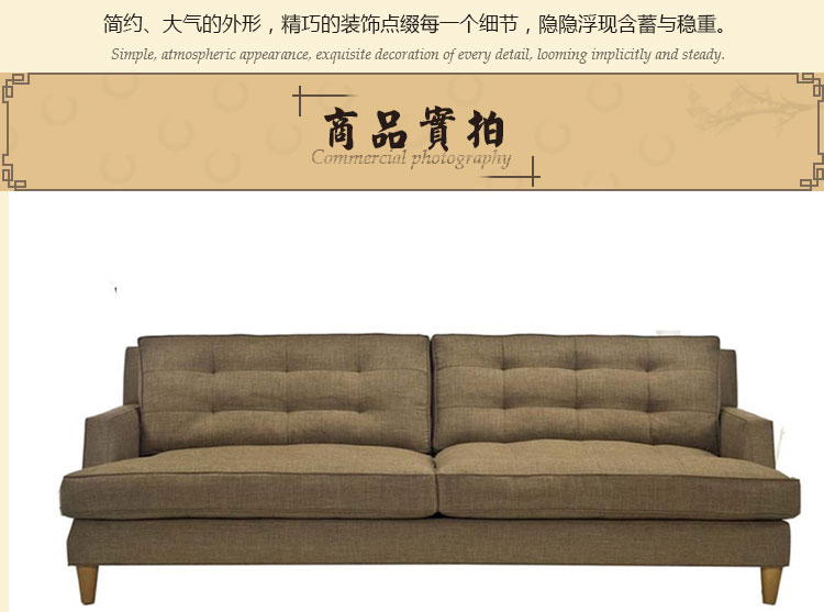 昂克雷 美式乡村沙发布艺小户型简约三人位布艺沙发LF2004