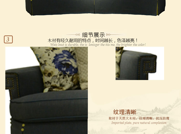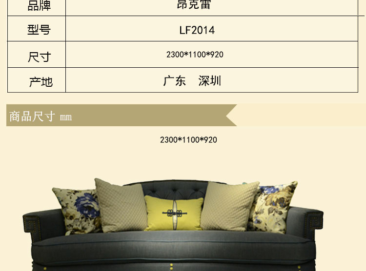 昂克雷 美式乡村沙发布艺小户型简约三人位布艺沙发 LF2014
