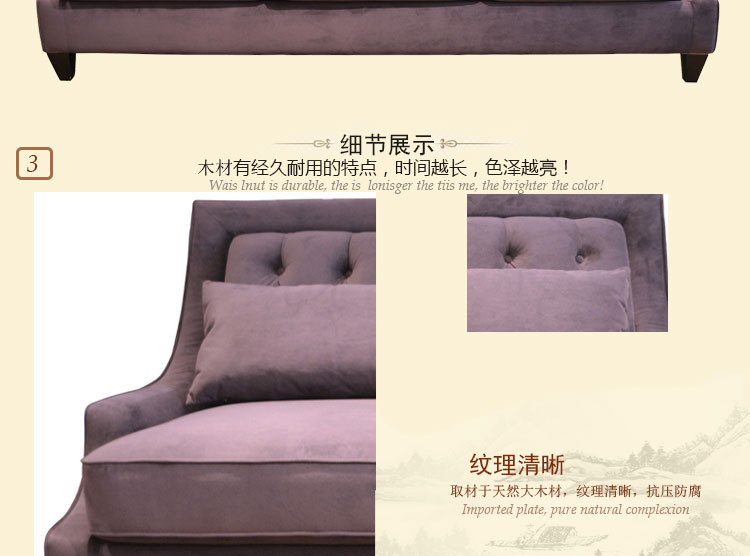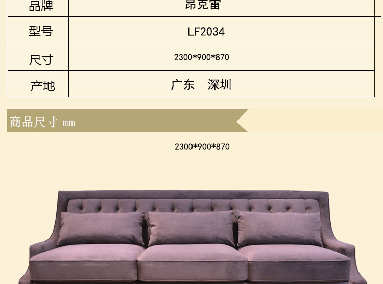 昂克雷 美式乡村沙发小户型拆洗布艺沙发三人沙发 LF2034