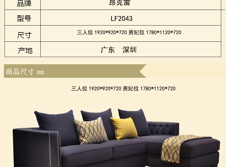昂克雷 美式乡村沙发田园沙发三人沙发小户型布艺沙发 LF2043
