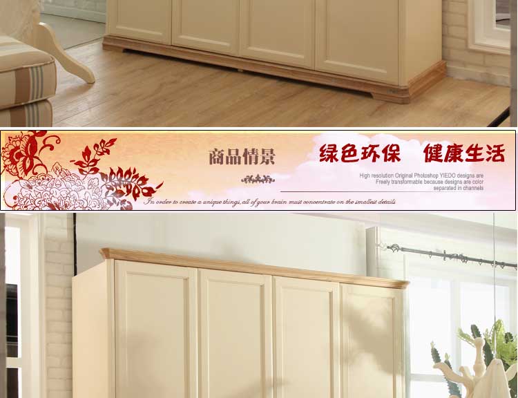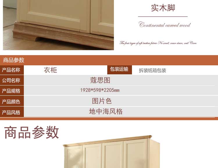 蔻斯图 地中海四门衣柜实木六门实木组合美式乡村田园衣柜JE01T4
