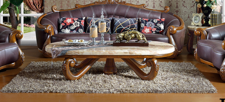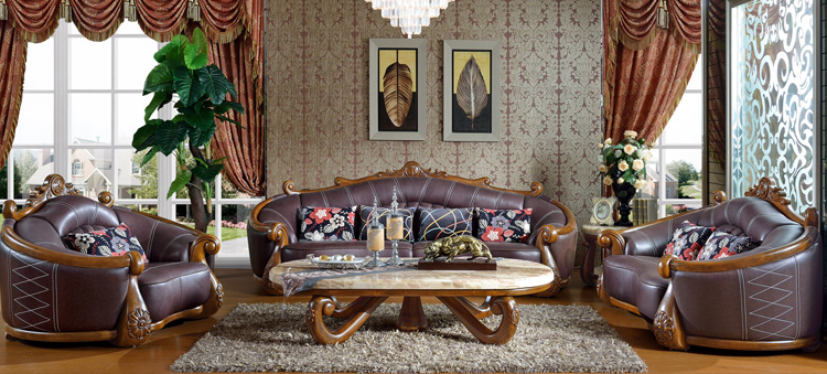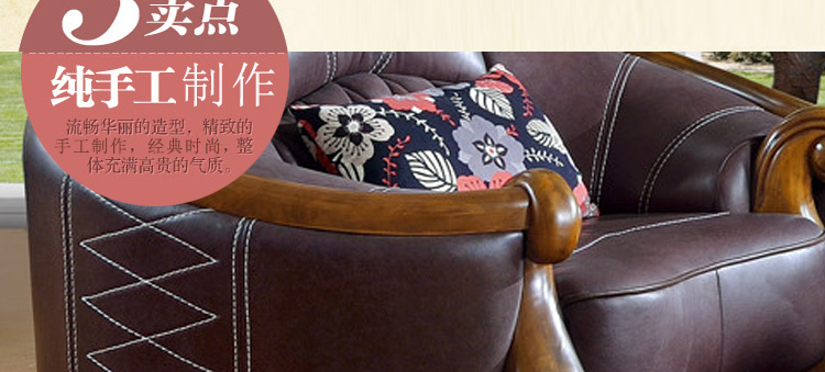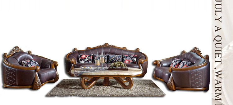 富家美佳欧式大户型真皮沙发组合客厅奢华全实木雕花家具套装B310