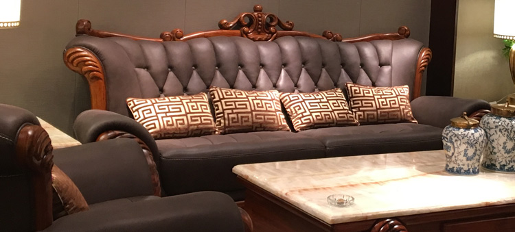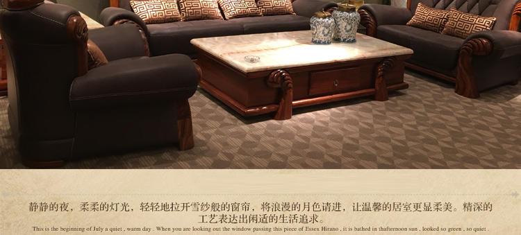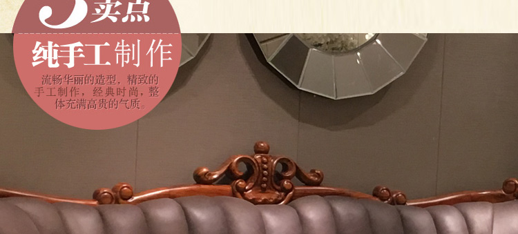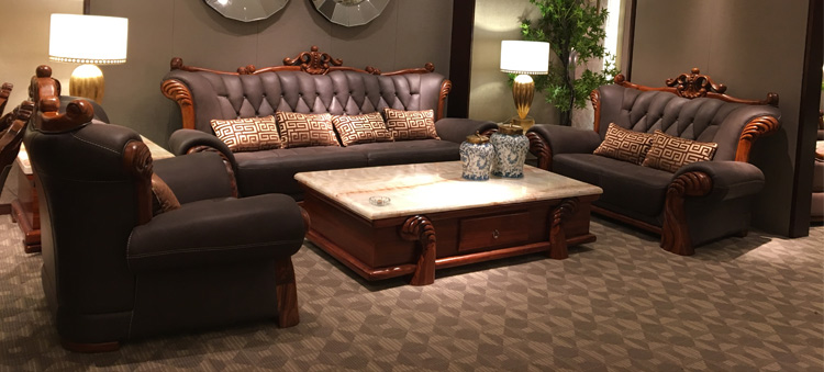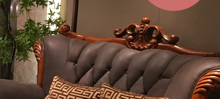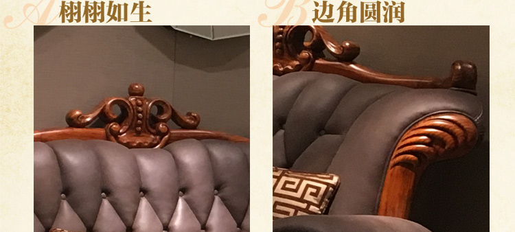 富家美佳乌金木欧式真皮沙发 欧式客厅奢华组合沙发实木头层牛皮家具B337