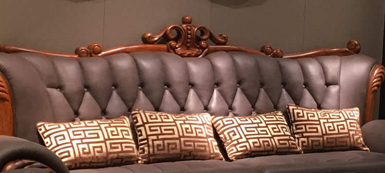 整个沙发的背部选材全部都进行打磨过,即使整套沙发不靠墙摆放一样不会影响效果。 同时半掩半露的设计,像颐和园的走廊一样庄重而富有文化气息。