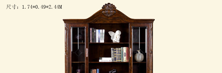富家美佳全实木书柜欧式书柜欧式书柜 玻璃两门大储物家具书柜K82