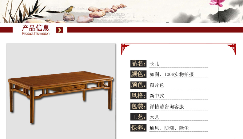品之源鸿桂坊系列高档木质全实木茶几 客厅家具 现代中式储物长几CJ-Y01