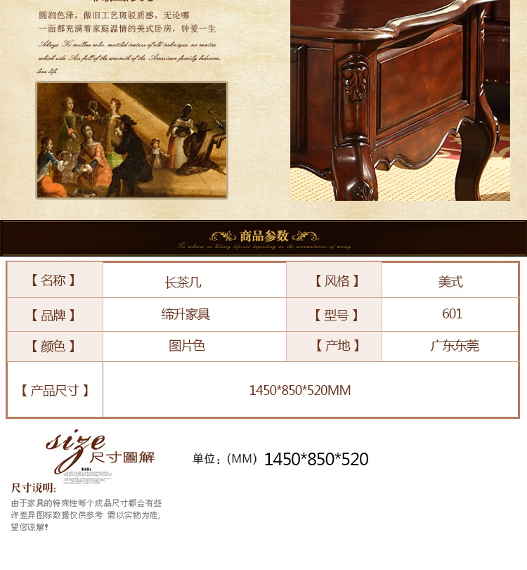 缔升家具 美式长茶几 简约高档宜家长茶几 小户型长茶几 601