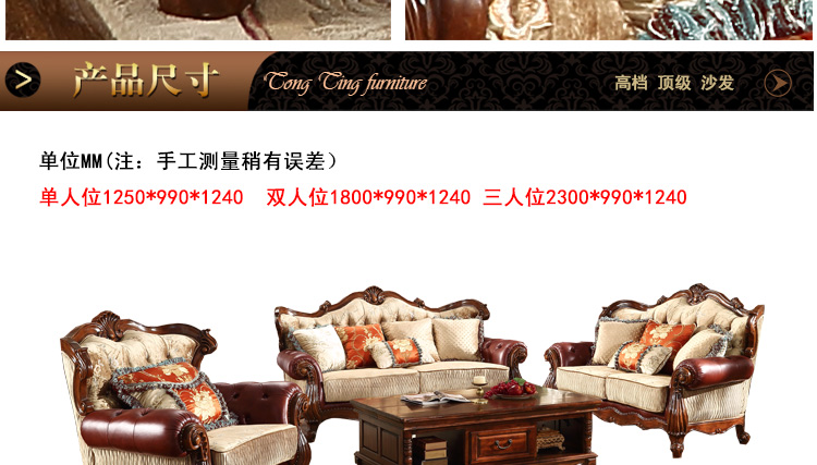 缔升家具 复古美式高档真皮沙发 小户型宜家沙发 123人位组合沙发FD1258
