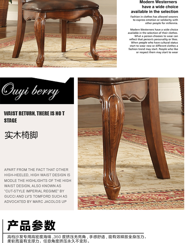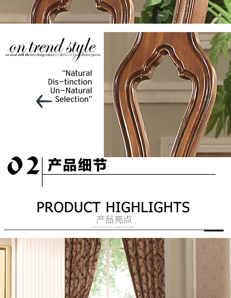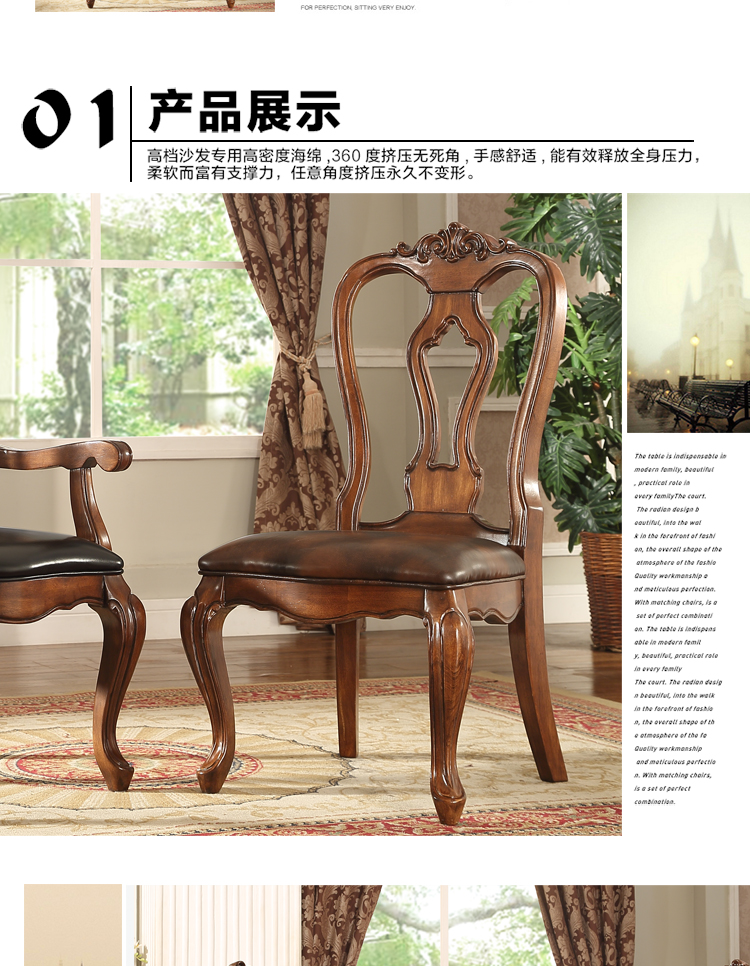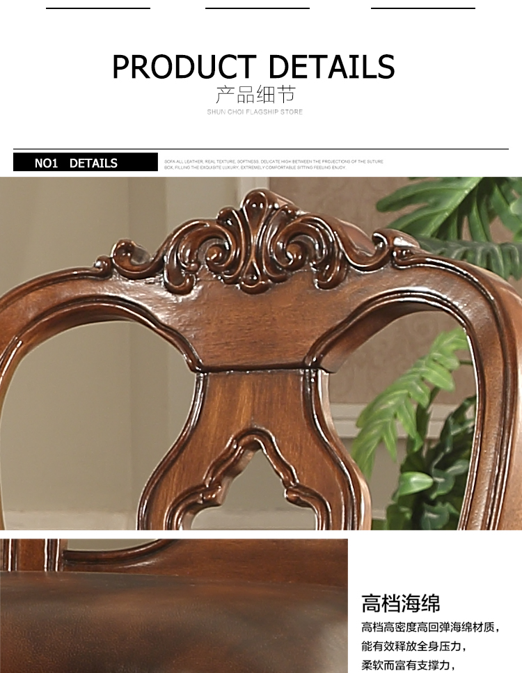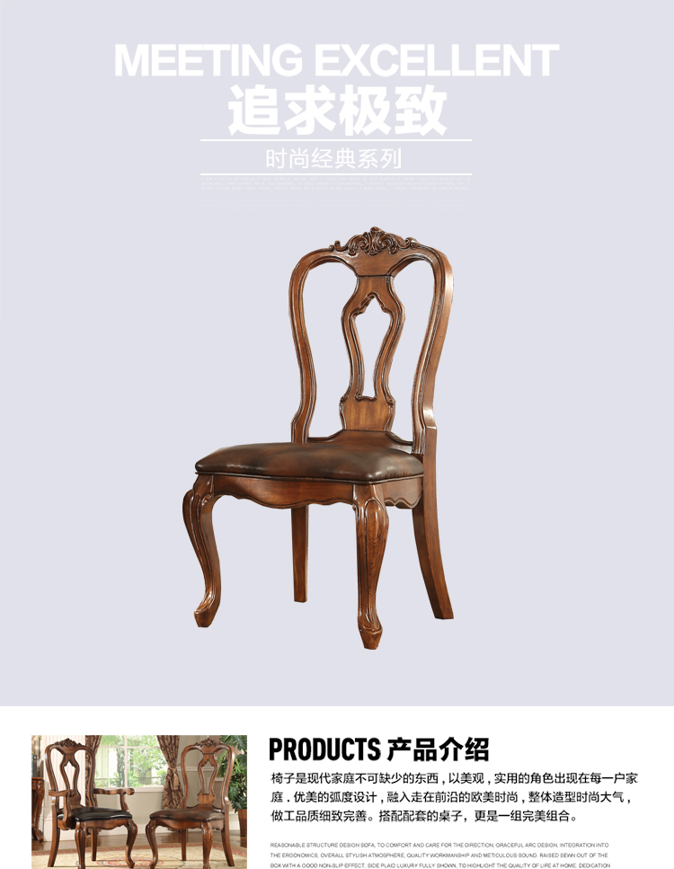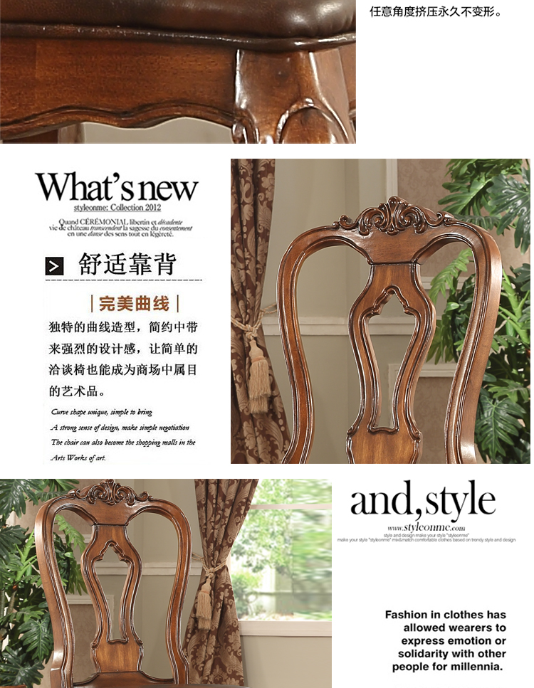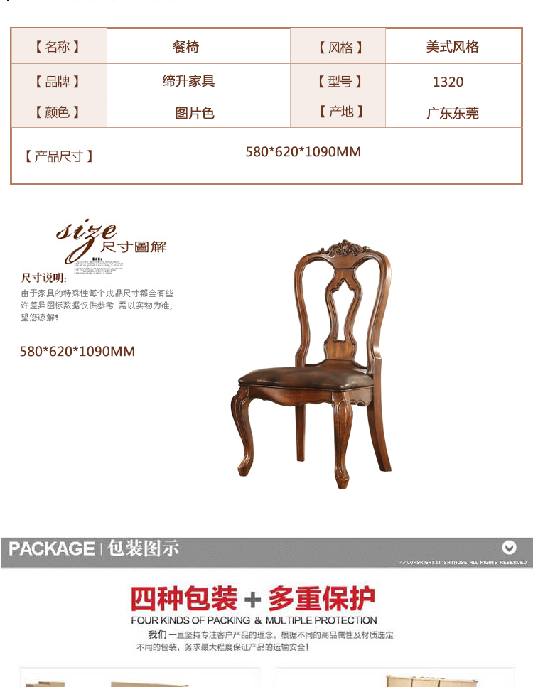 缔升家具 美式乡村家具实木餐椅 书椅子简美复古餐厅餐椅 1320