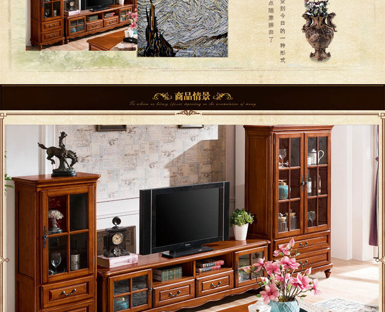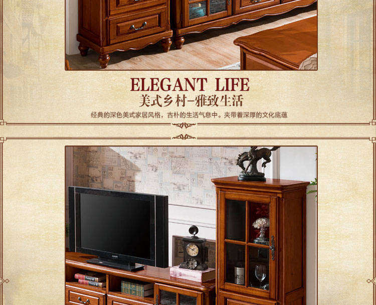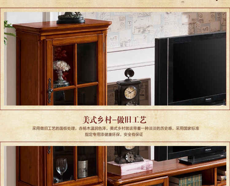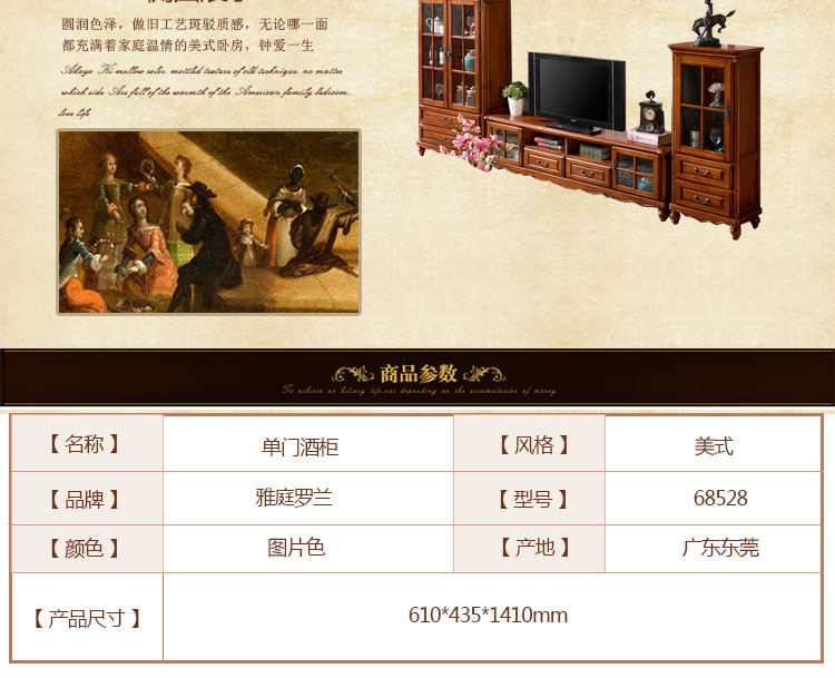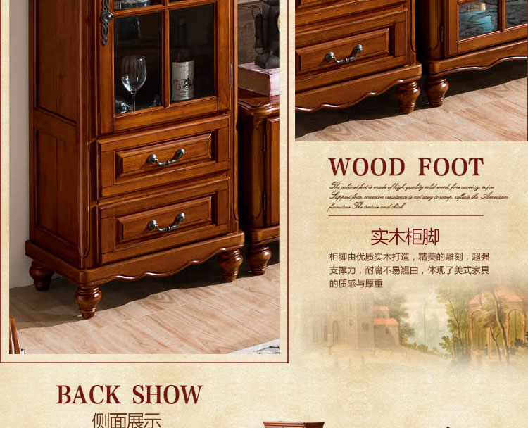 雅庭罗兰 美式实木酒柜餐边柜门厅酒柜展示柜欧式小酒柜客厅多功能高柜 68528