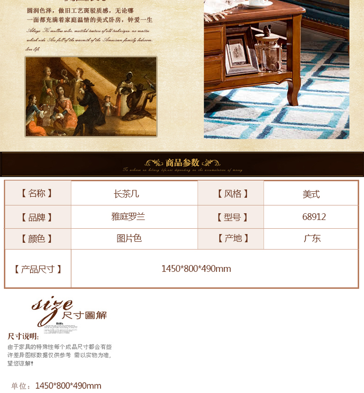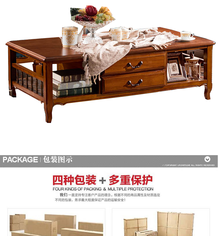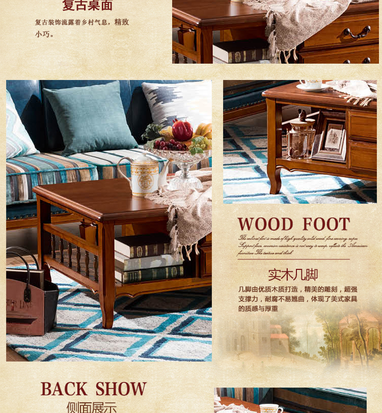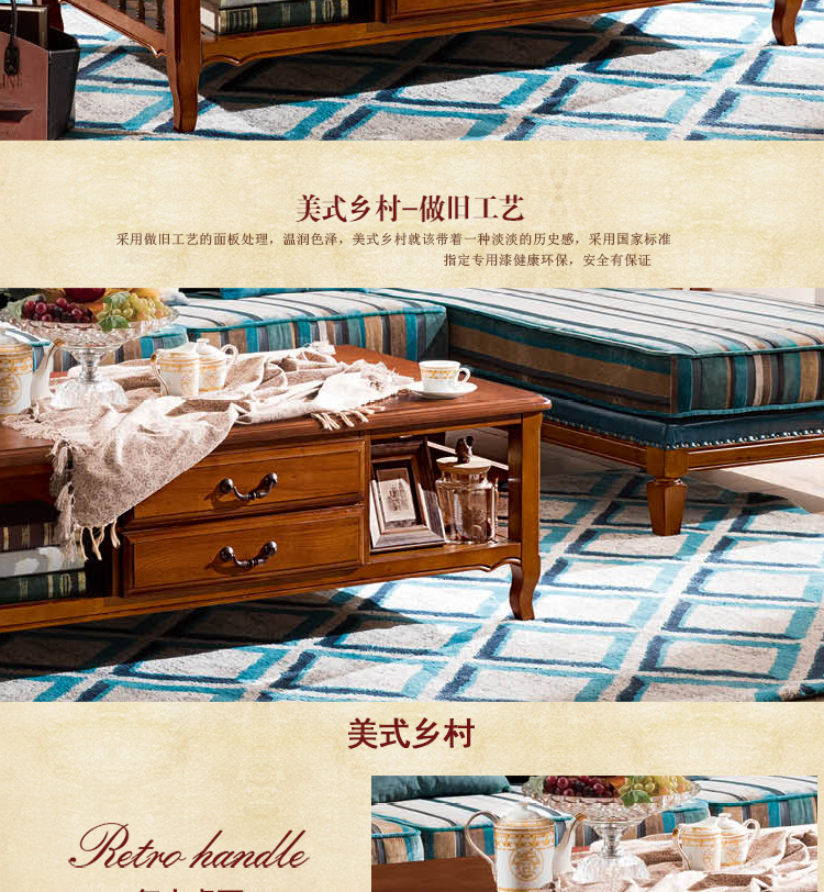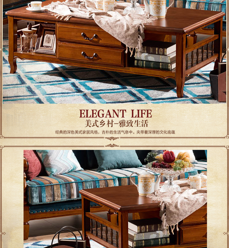 雅庭罗兰 美式乡村茶几 高档客厅茶几 简约茶几 美式储藏柜 68912