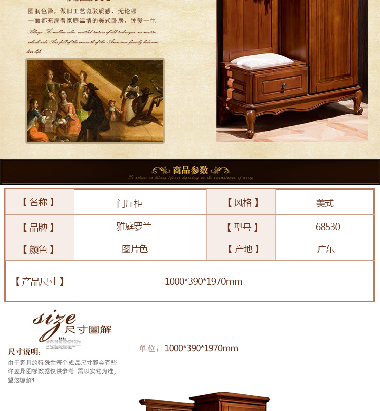雅庭罗兰 高档门厅柜 美式乡村门厅柜 简约间厅柜 美式储藏柜 68530