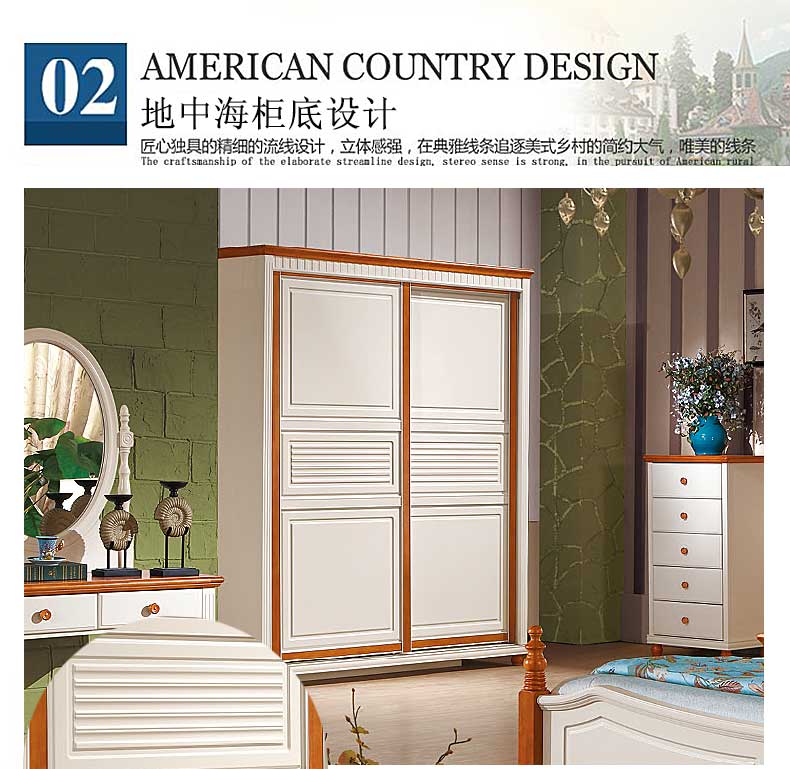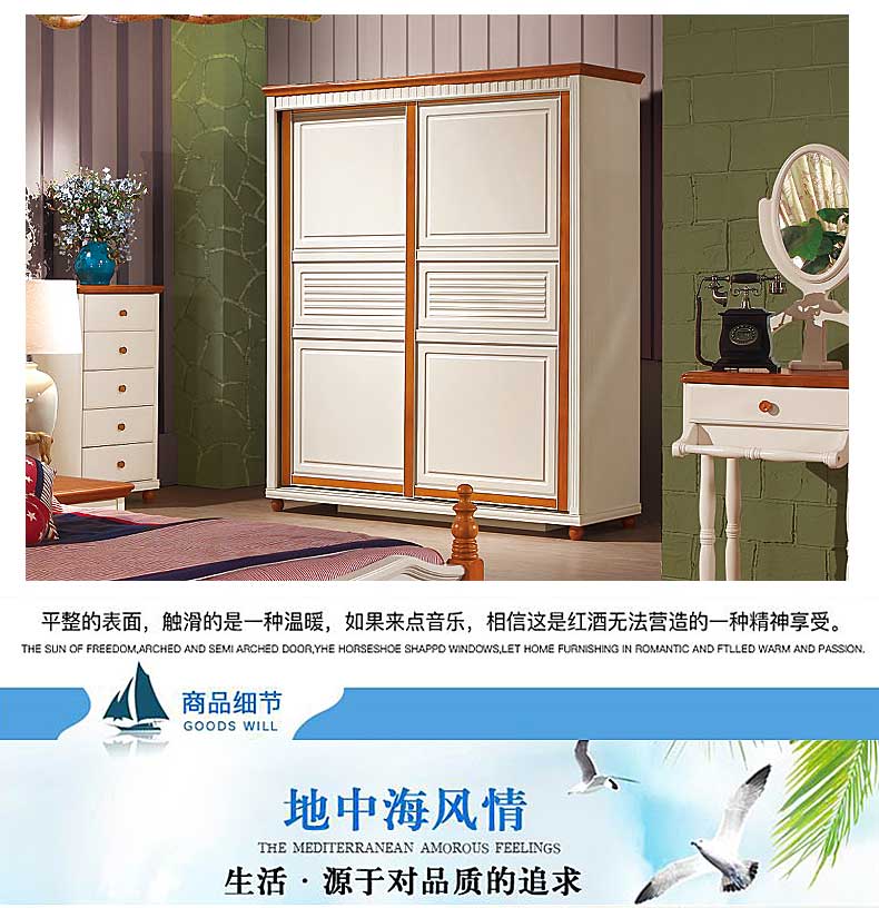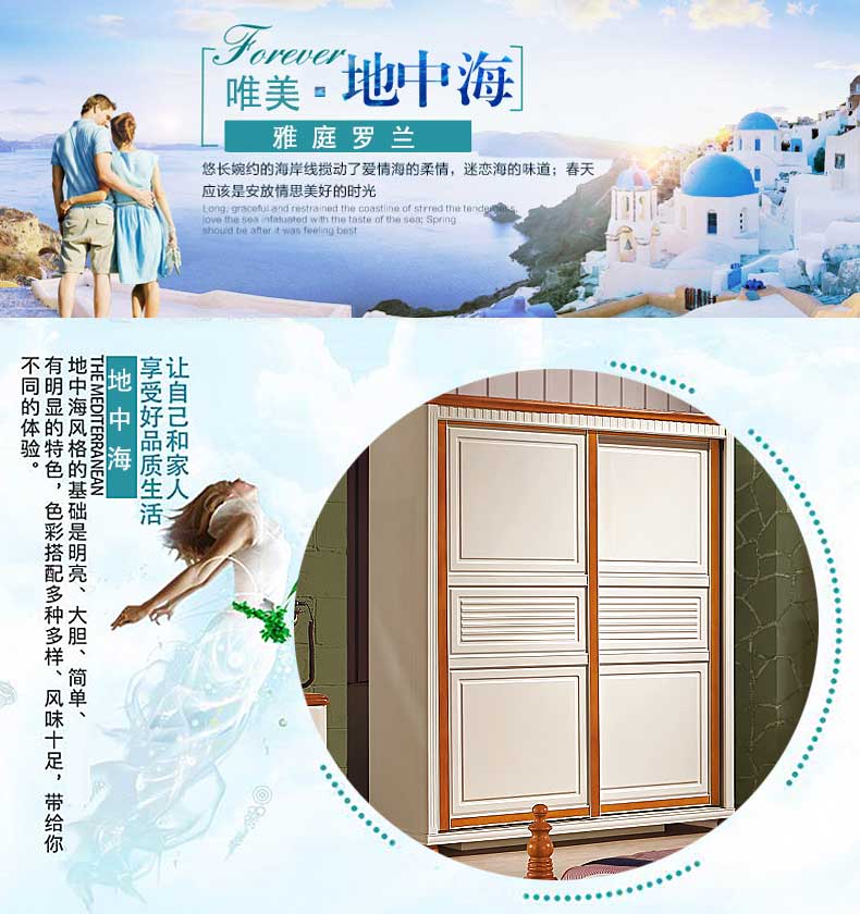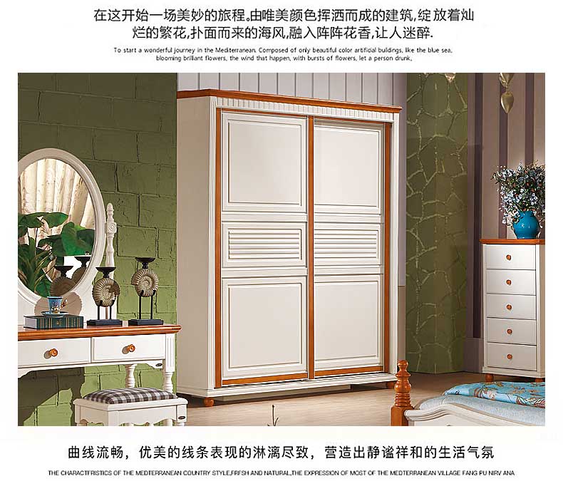 雅庭罗兰地中海衣柜推拉门木质大衣柜两门衣橱DZH-89156趟门衣柜