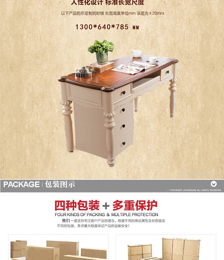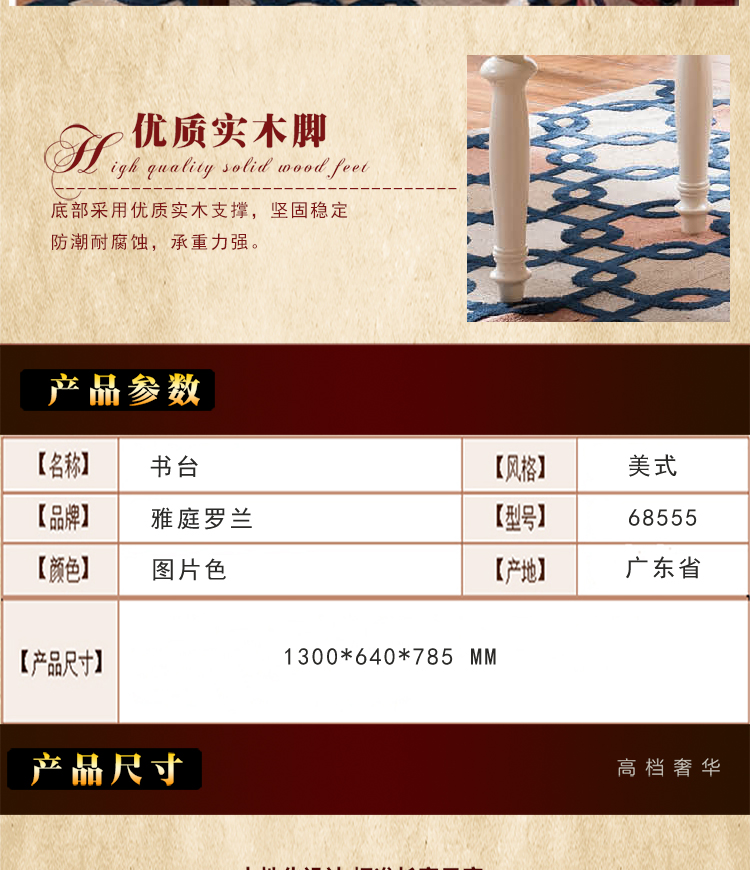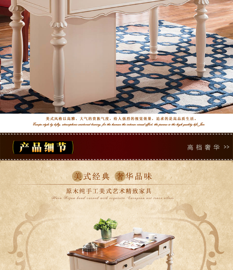 雅庭罗兰 家具实木书台客厅 复古简约书台高档咖啡桌美式乡村68555
