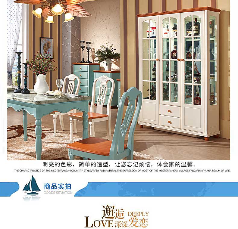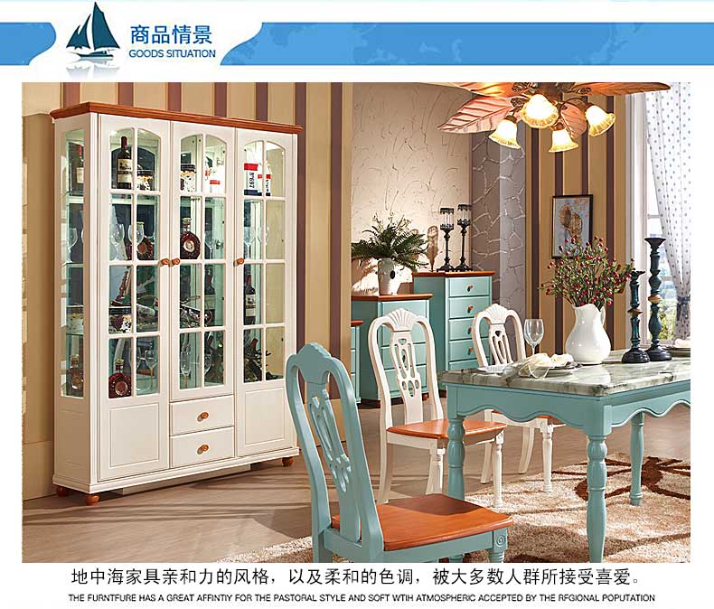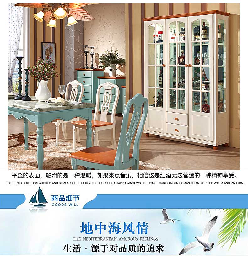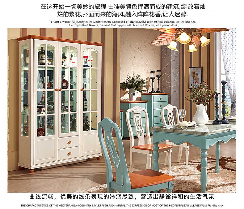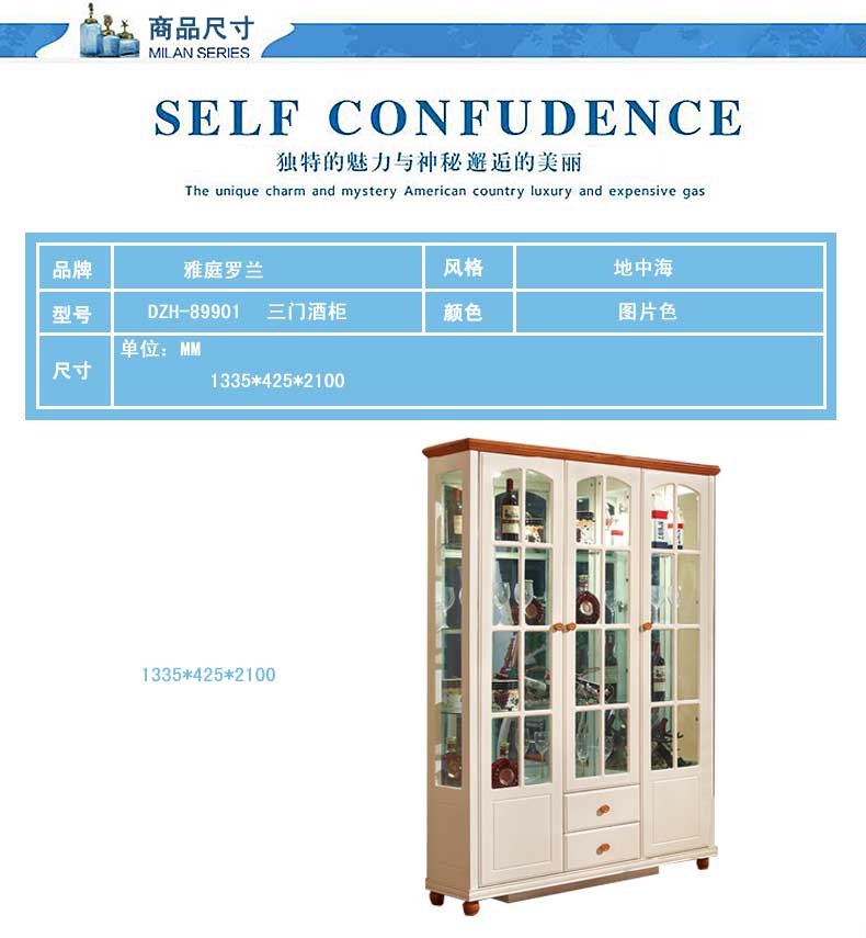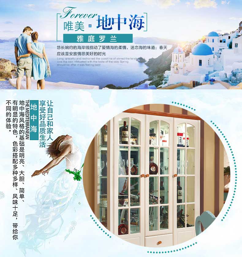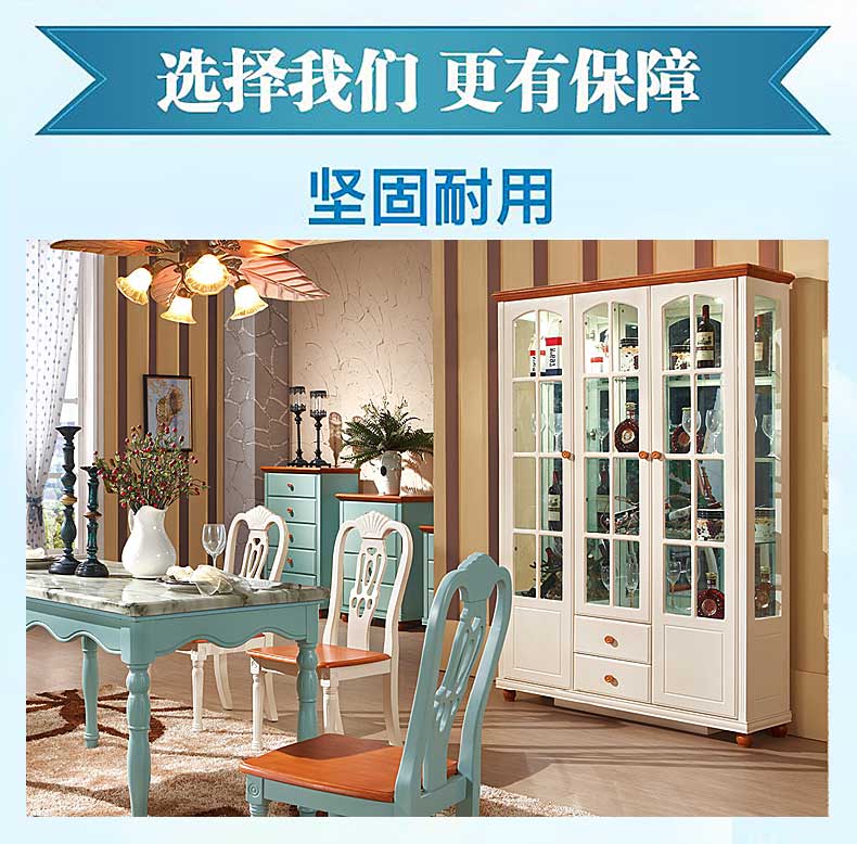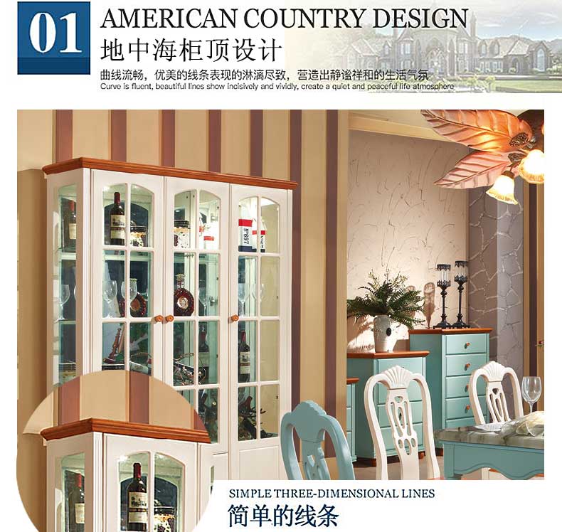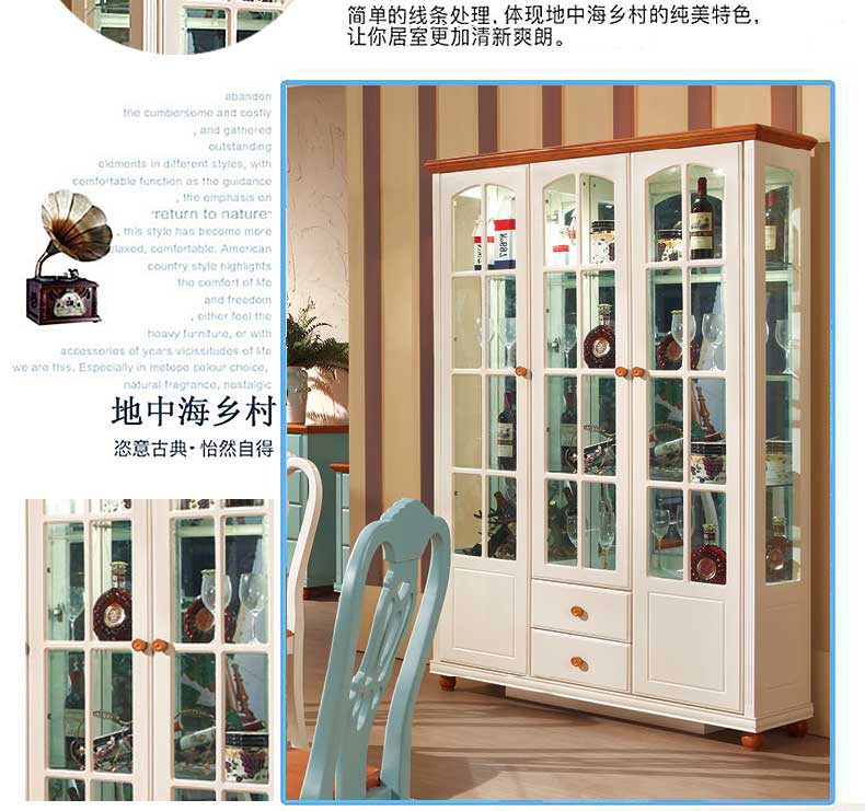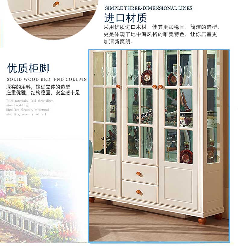 雅庭罗兰地中海风格酒柜田园餐边柜乡村客厅装饰柜子储物柜边柜DZH-89901三门酒柜
