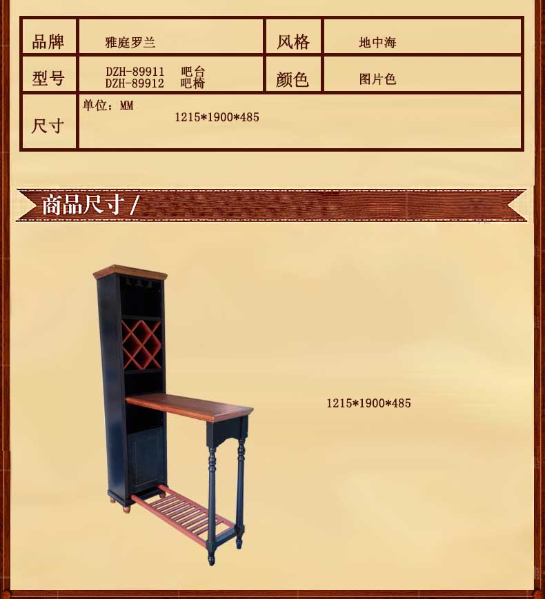 雅庭罗兰新款家用地中海吧台酒吧台客厅隔断高脚桌DZH-89911吧台