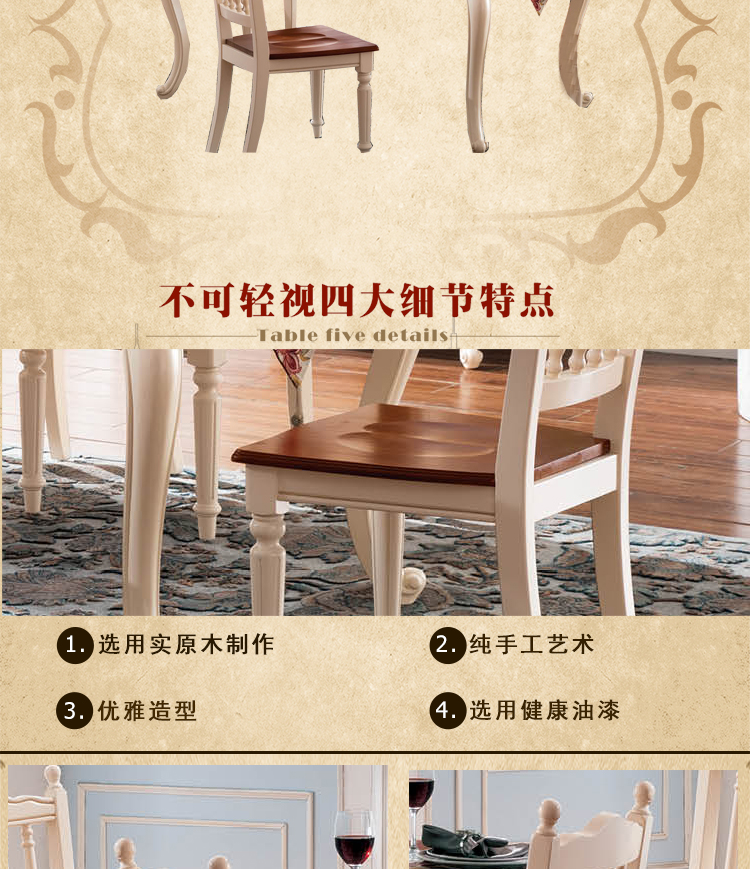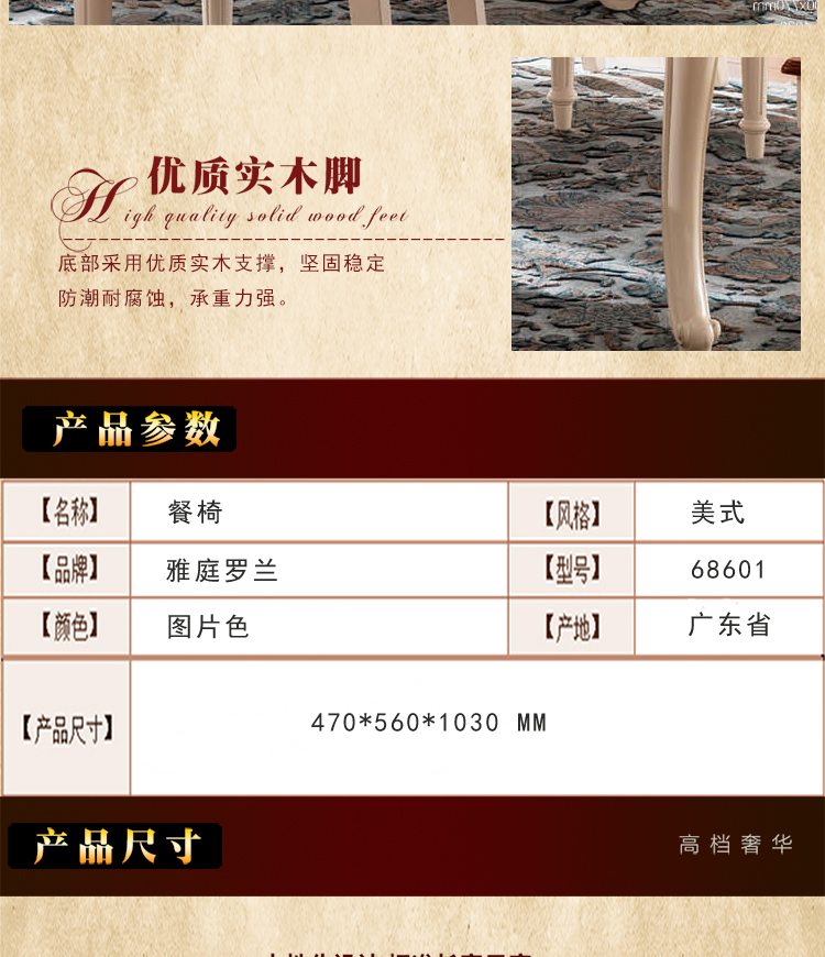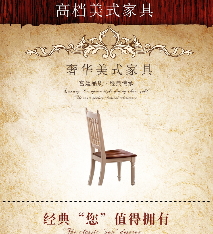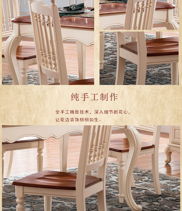 雅庭罗兰 纯实木书房白色椅子饭椅家具 餐椅 美式高档餐椅 靠背椅 68601