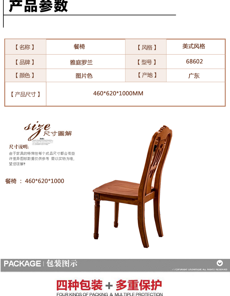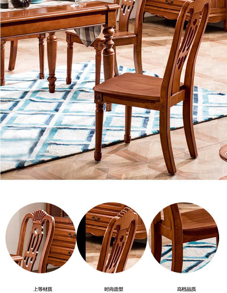 雅庭罗兰 餐椅 美式休闲椅餐厅酒店实木椅子复古做旧化妆凳 68602