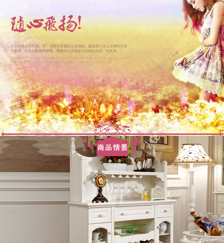 雅庭罗兰 纯实木餐边柜 韩式高档餐边柜橱 简约新款储物柜 YT-9773