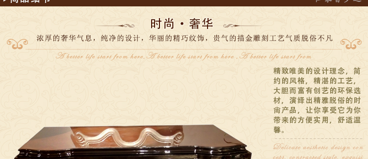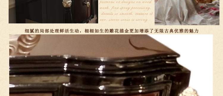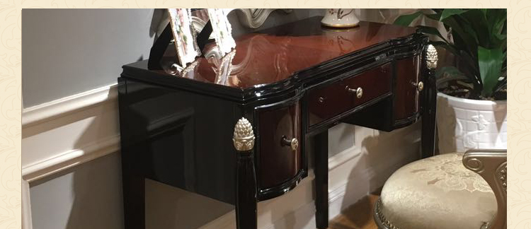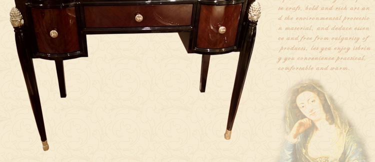 法式家具十分推崇优雅、高贵和浪漫,它是一种基于对理想情景的考虑,追求建筑的诗意、诗境,力求在气质上给人深度的感染。艺术风格最集中体现在家具的设计方面,要特征在于布局上突出轴线的对称,恢宏的气势,高贵典雅。细节处理上注重雕花、线条,制作工艺精细考究。