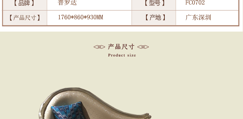 外围尺寸:FC0702贵妃椅1760*860*930mm