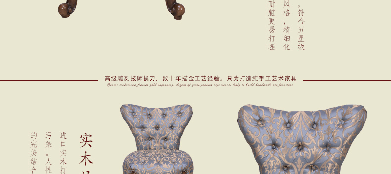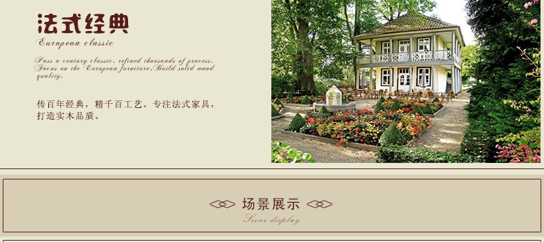 法式家具十分推崇优雅、高贵和浪漫,它是一种基于对理想情景的考虑,追求建筑的诗意、诗境,力求在气质上给人深度的感染。艺术风格最集中体现在家具的设计方面,要特征在于布局上突出轴线的对称,恢宏的气势,高贵典雅。细节处理上注重雕花、线条,制作工艺精细考究。